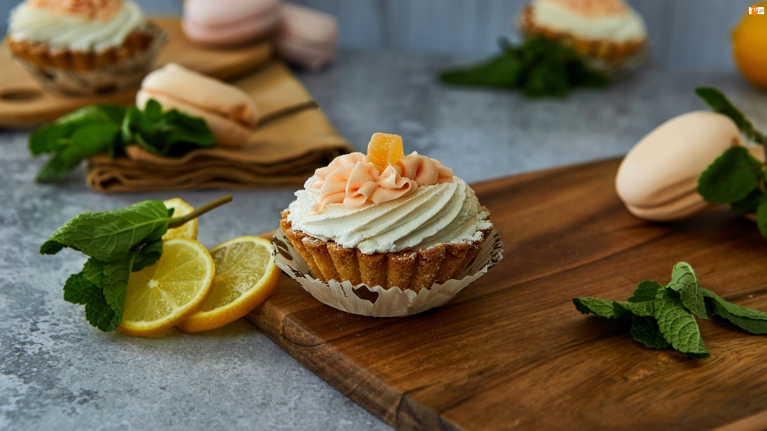 Krem, Cytryna, Deska, Babeczka, Mięty, Listki, Plasterki