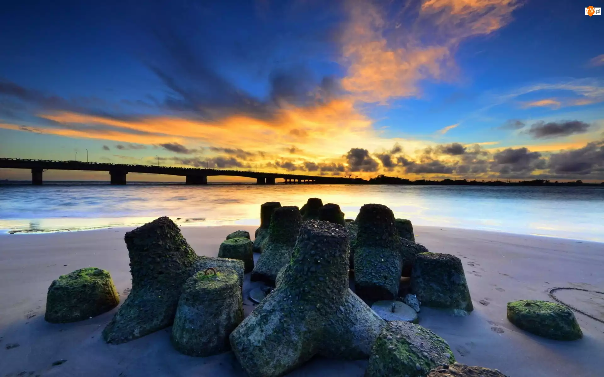 Plaża, Chmury, Most