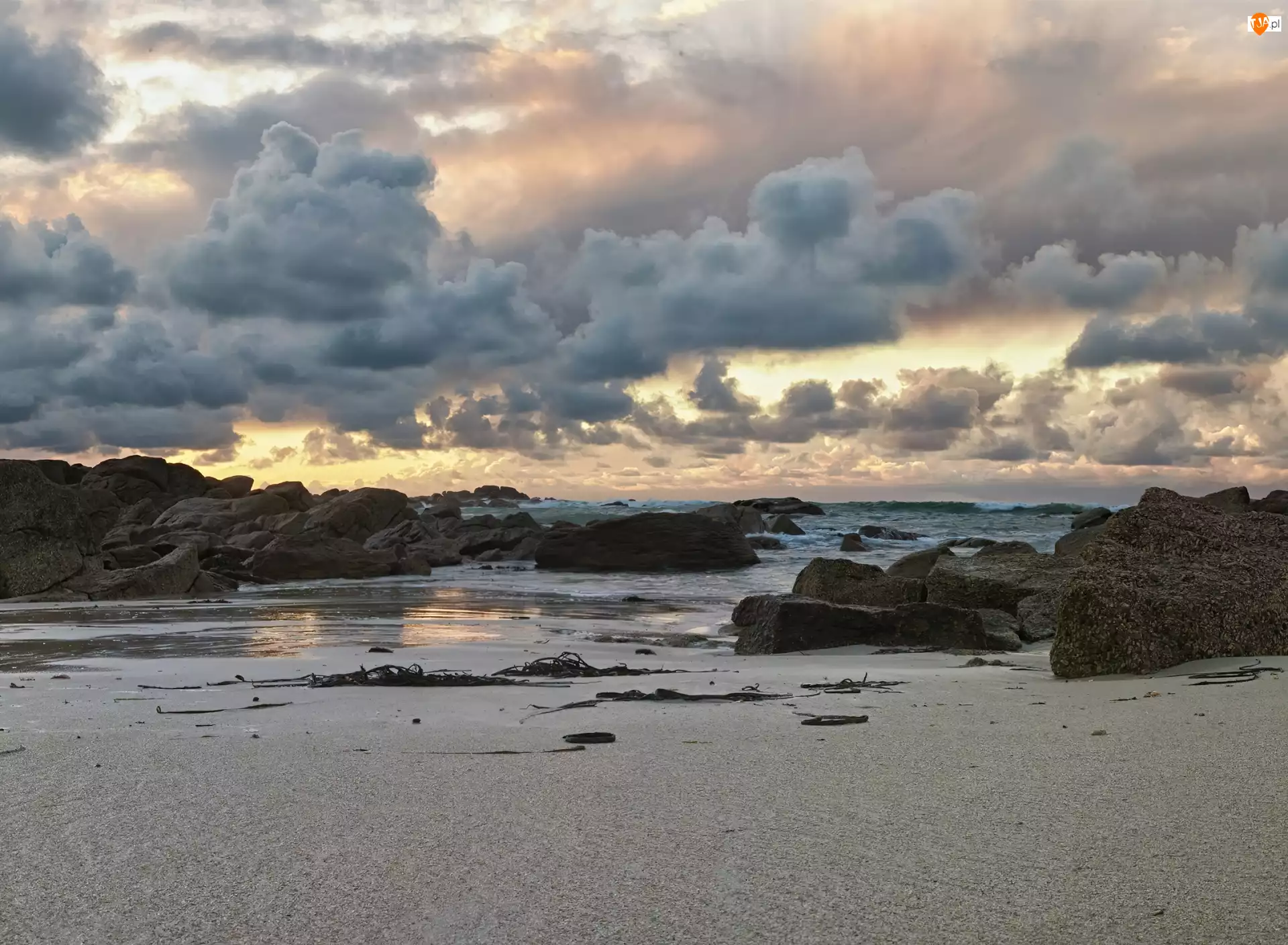 Plaża, Chmury, Piasek, Skały