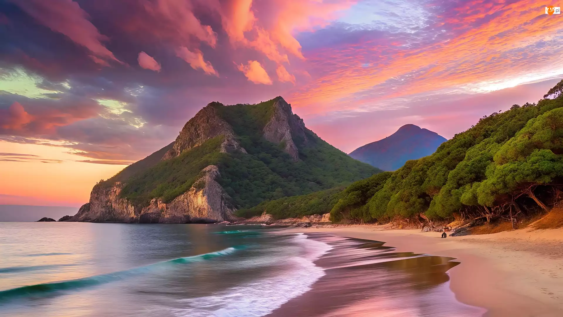 Tagi: Plaża Góry Morze Zachód Słońca