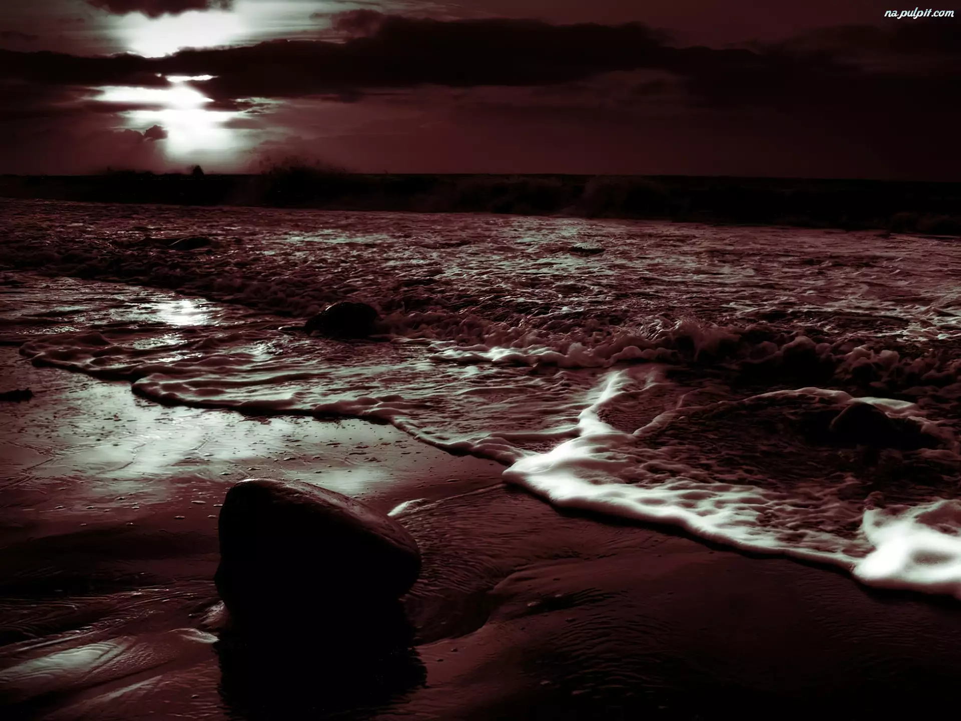 Kamienie, Plaża, Nocą, Piasek