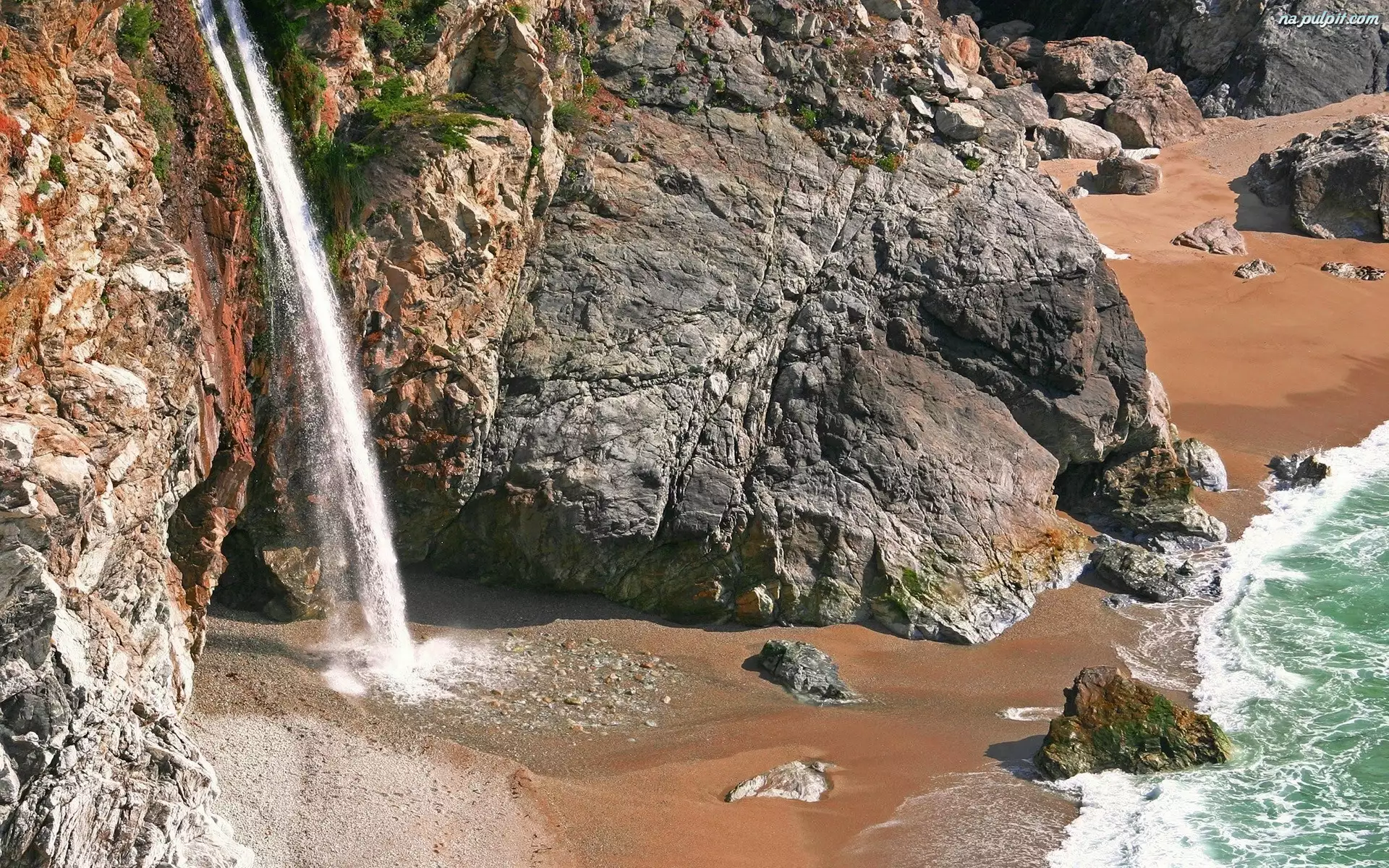 Brzeg, Plaża, Wodospad, Klify, Morza
