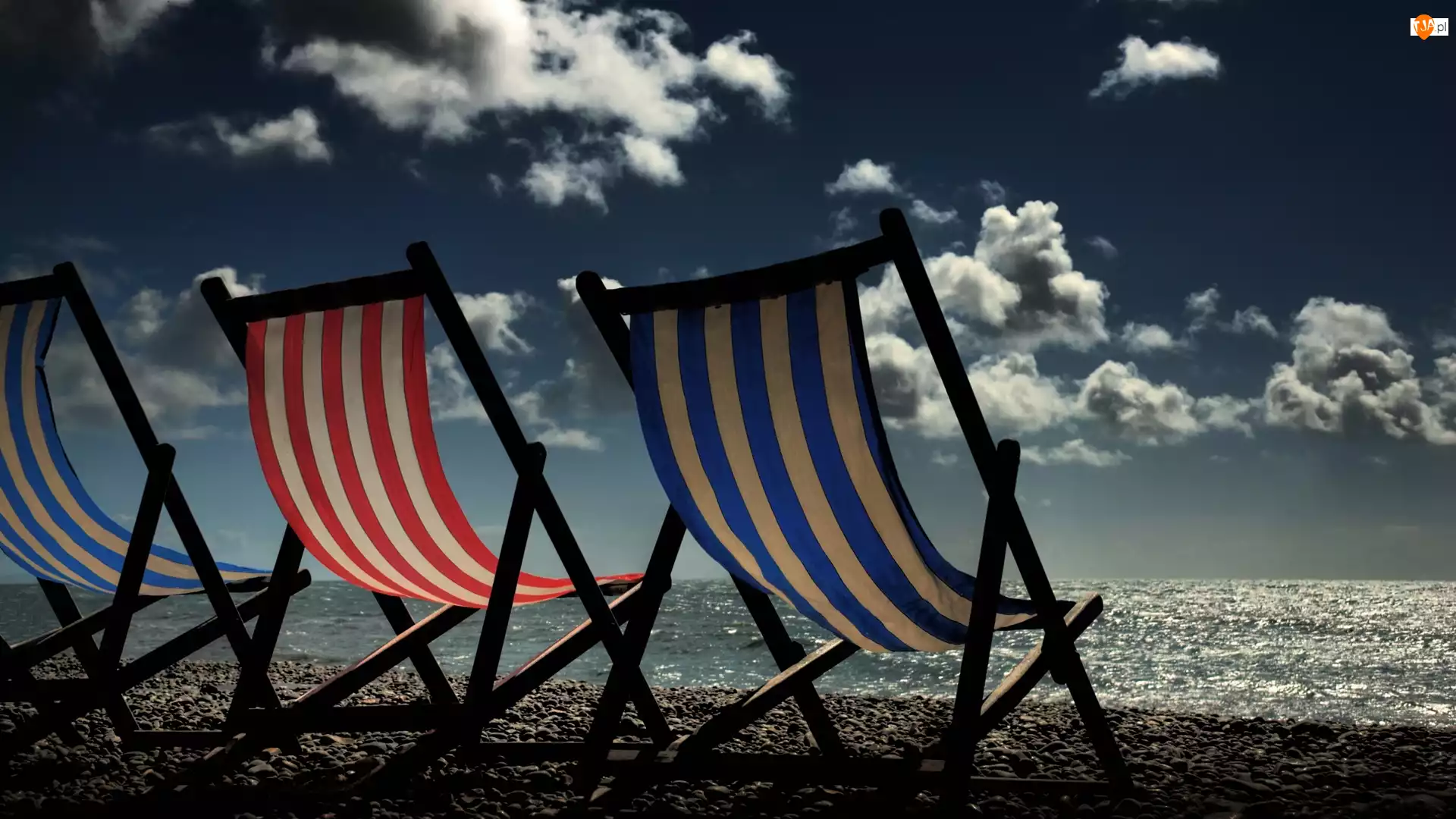 Morze, Chmury, Trzy, Wakacje, Plaża, Leżaki