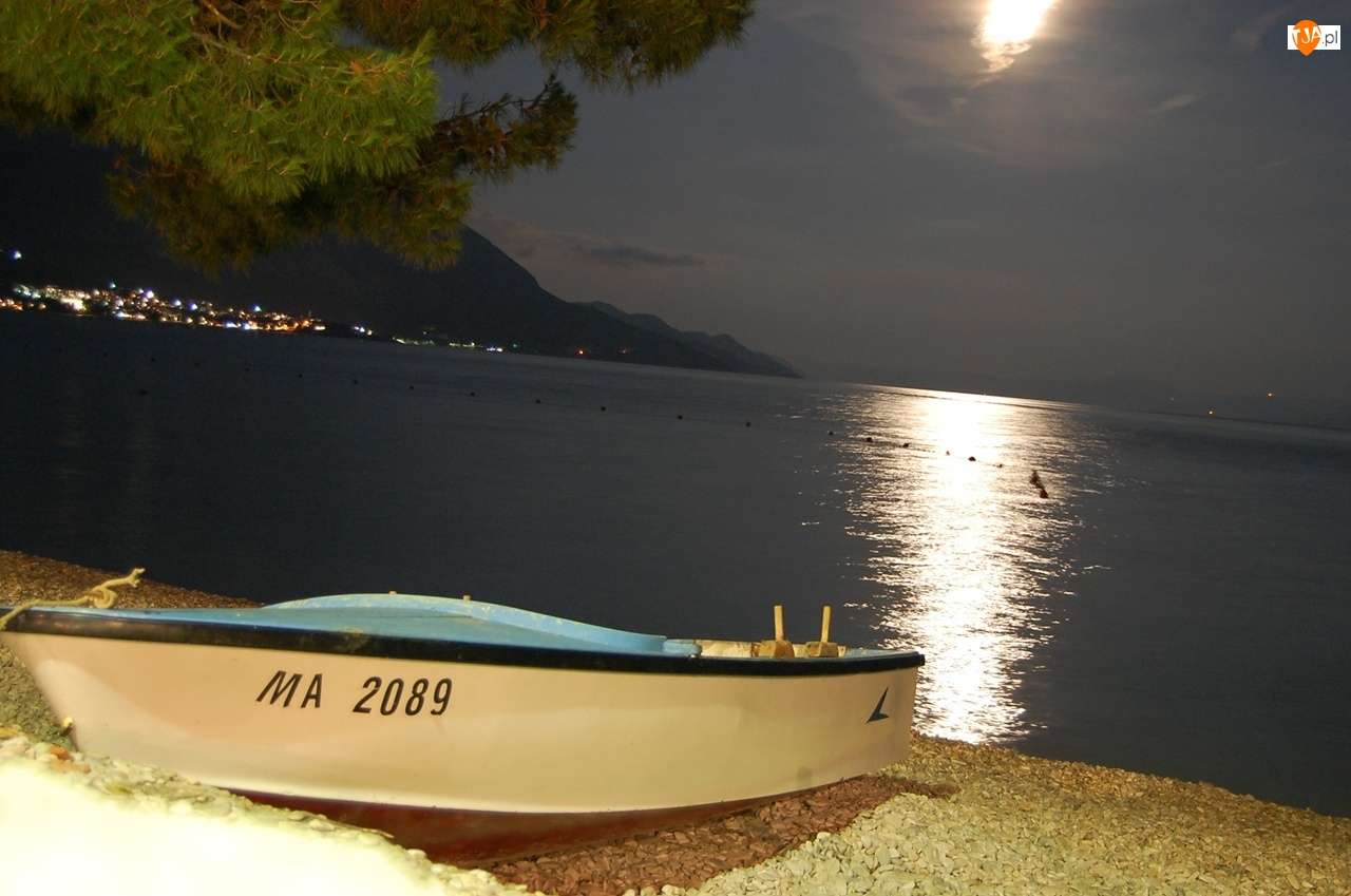 Plaża, Łódka, Nocą, Chorwacja