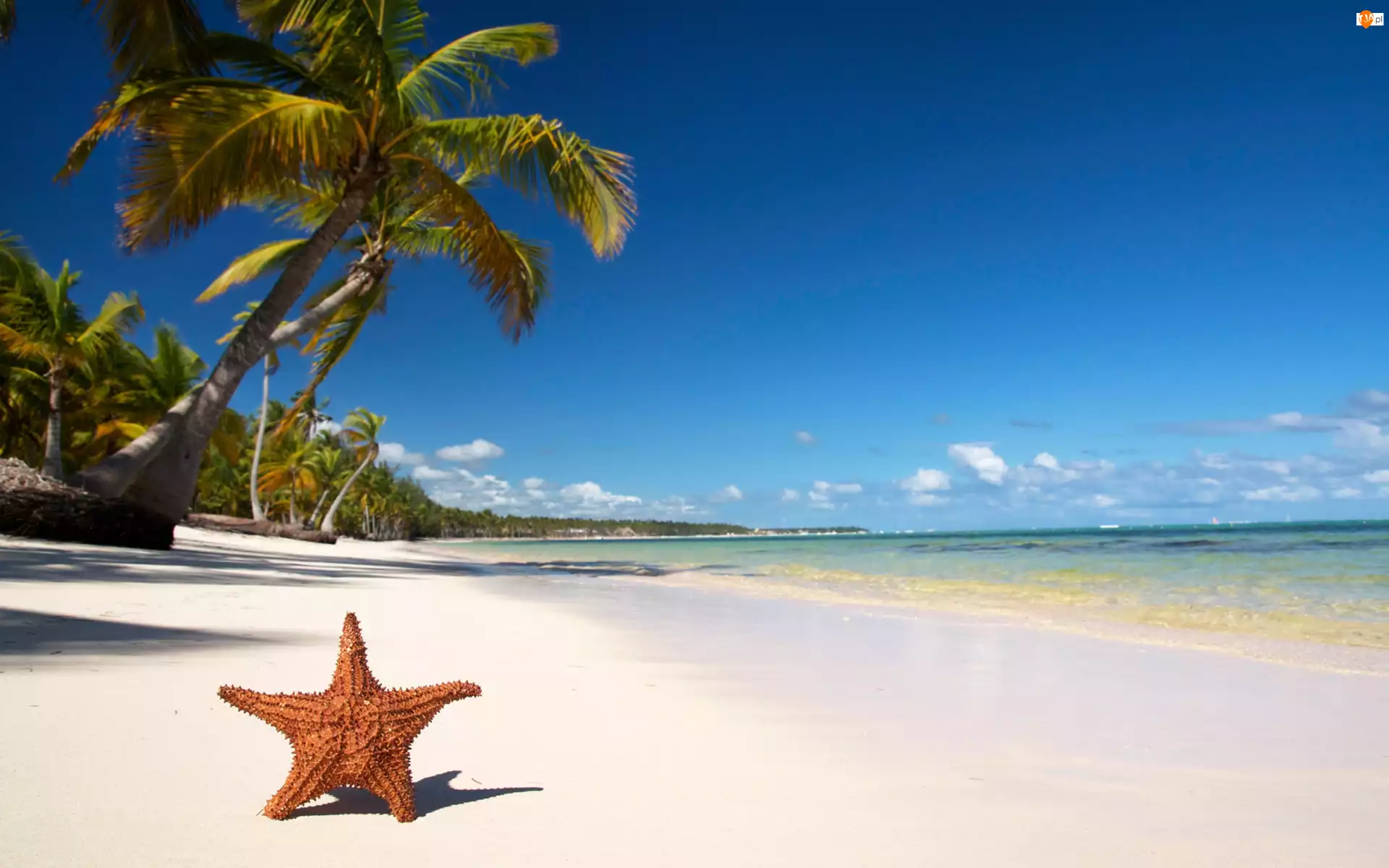 Plaża, Tropiki, Rozgwiazda, Palmy