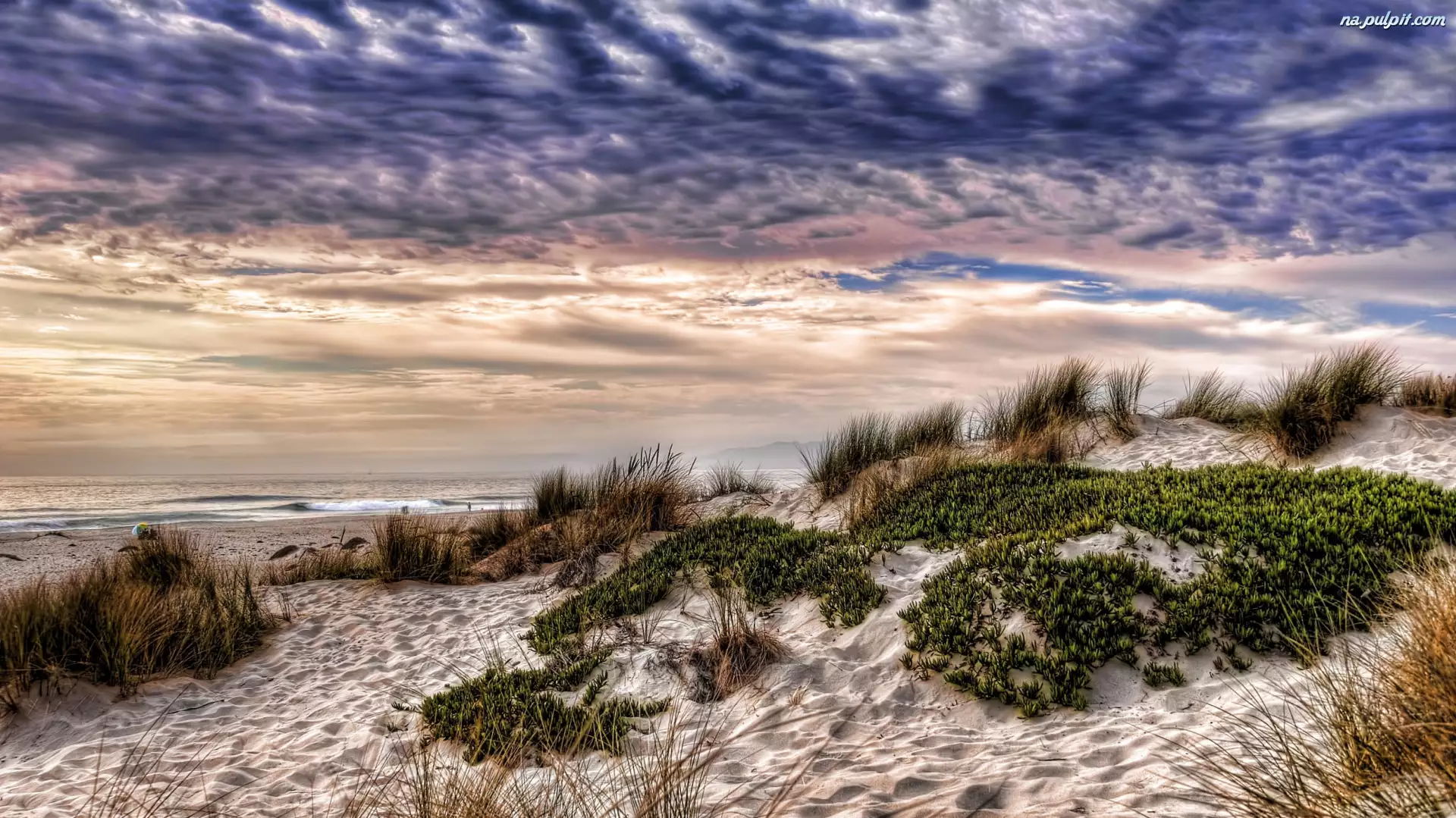 Kalifornia, Oxnard, Piasek, Stany Zjednoczone, Chmury, Morze, Plaża