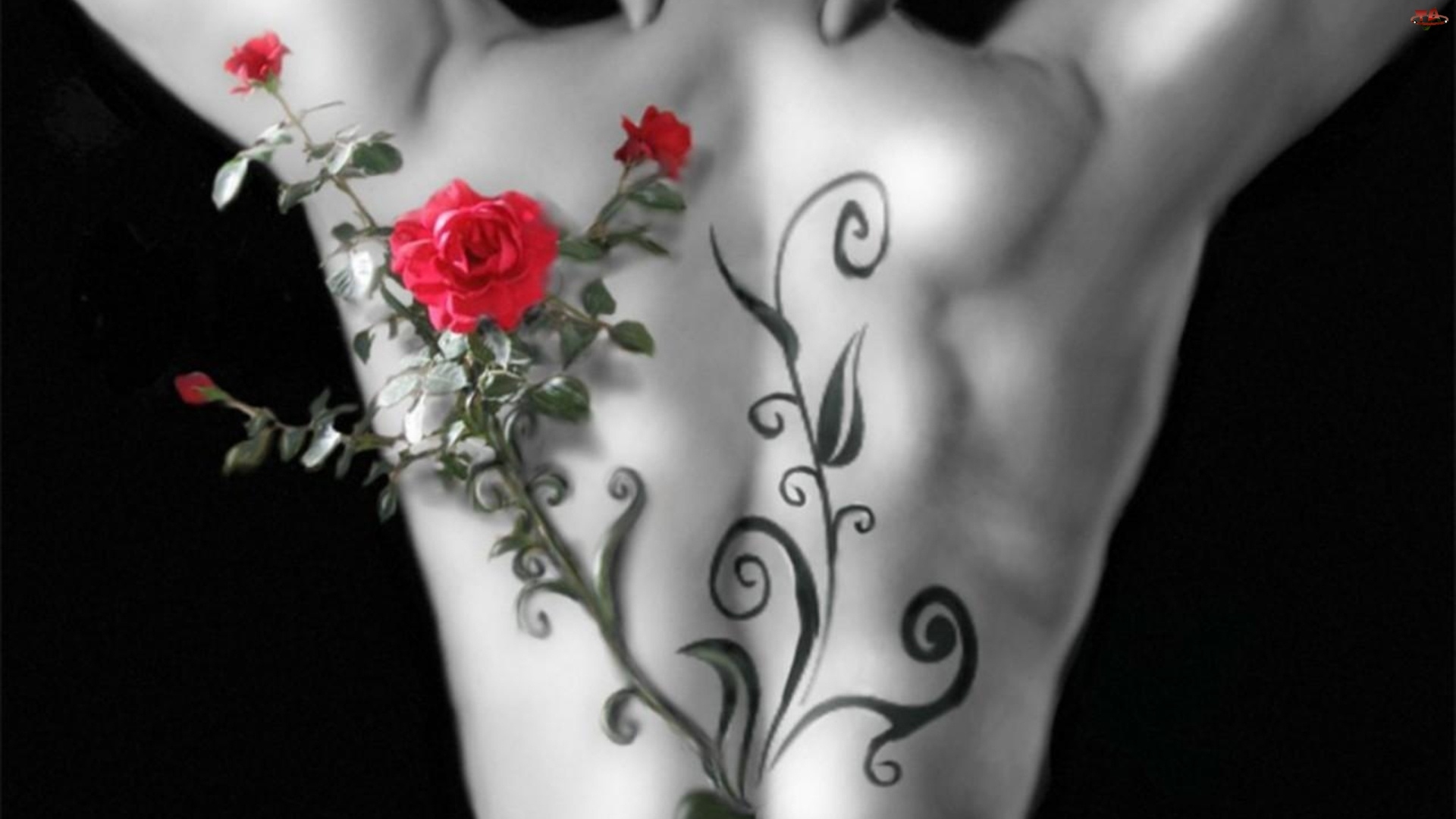 Plecy, Róży, Tatuaż, Gałązka