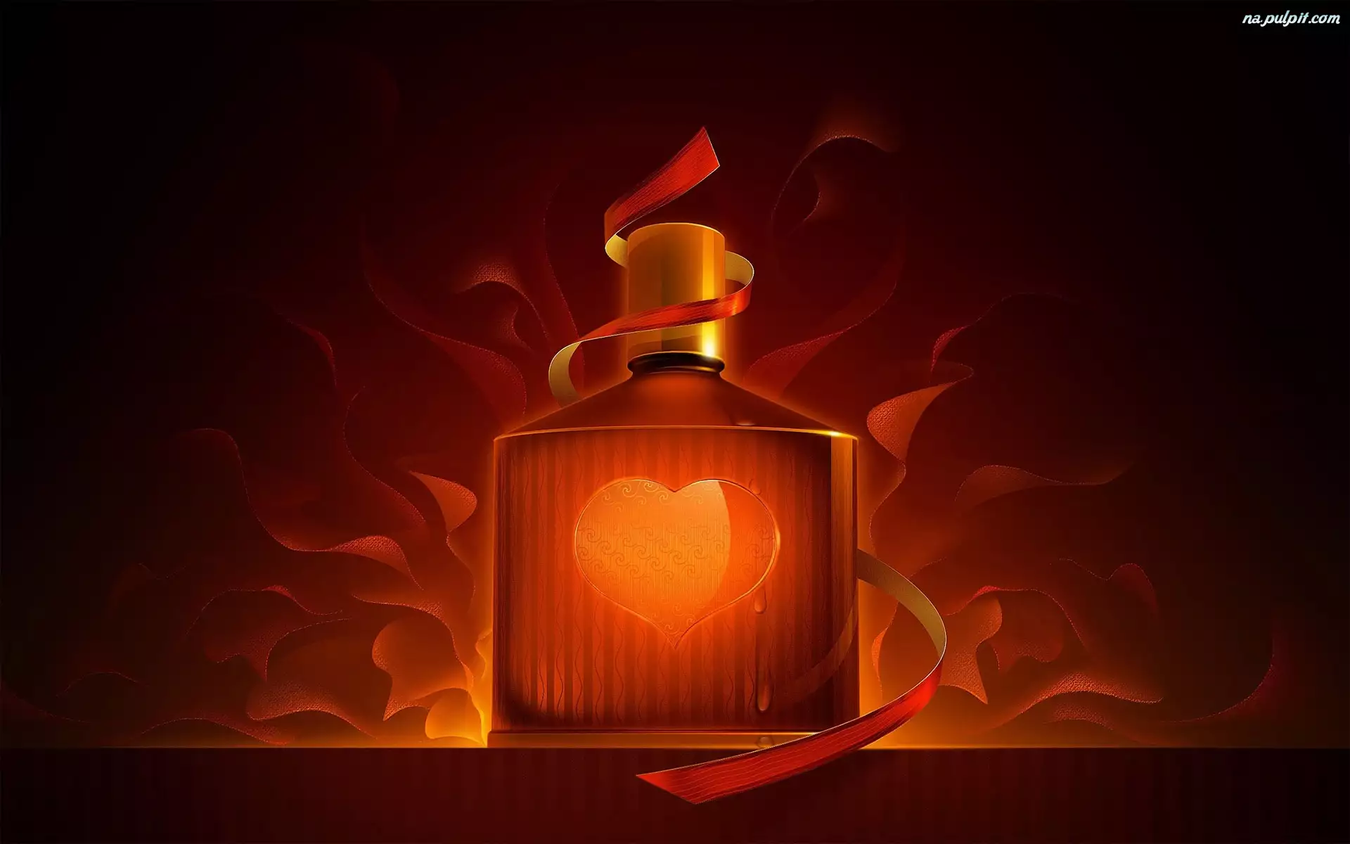 Płomienie, Walentynki, Serce, Perfum, wstążka