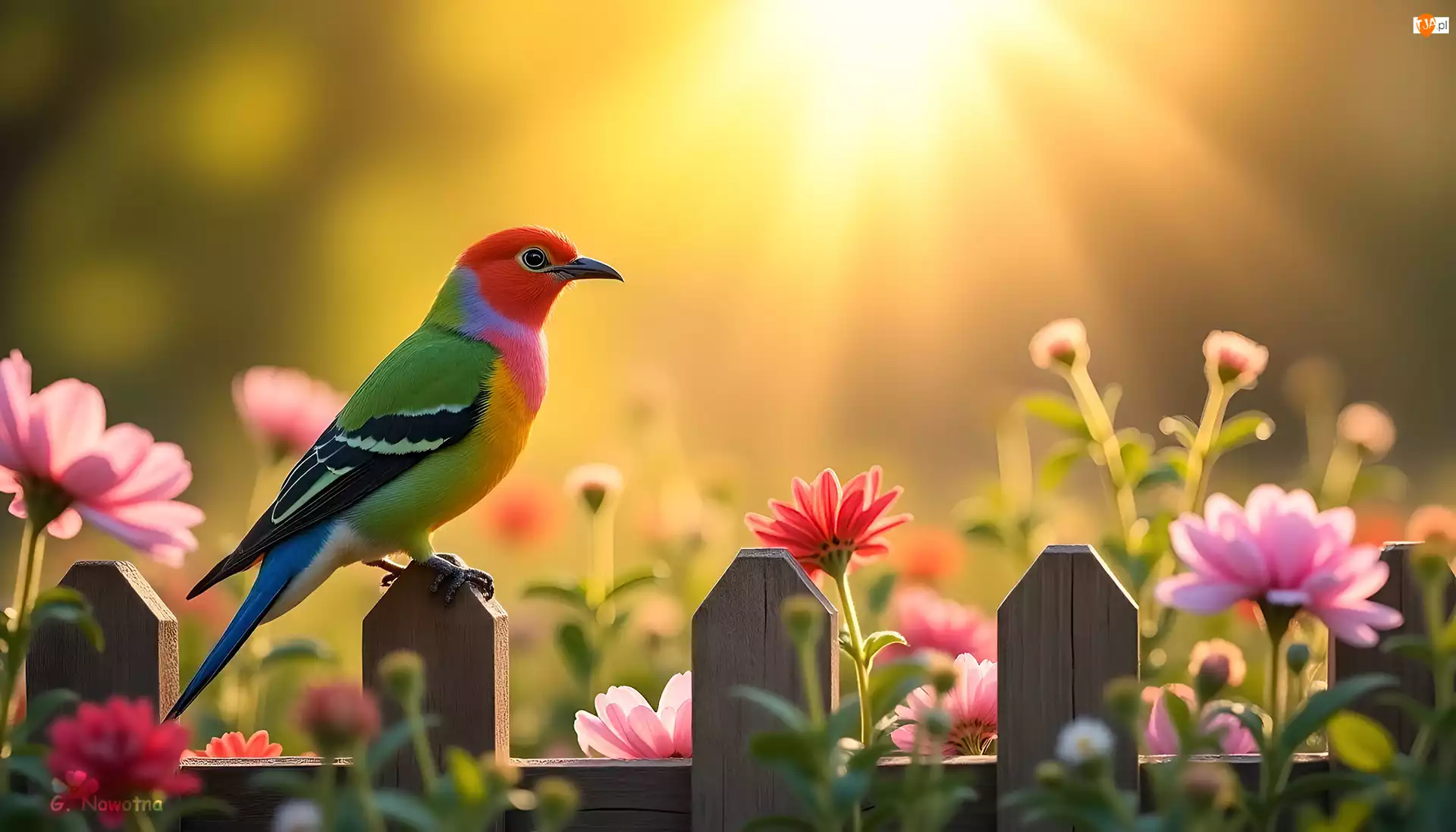 Tagi: Płot Grafika Ptak Kolorowy Kwiaty