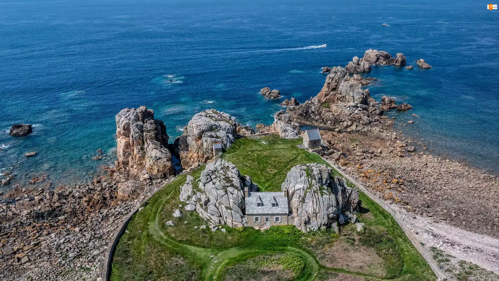 Plougrescant, Dom, Wybrzeże, Francja, Morze, Skały, Castel Meur