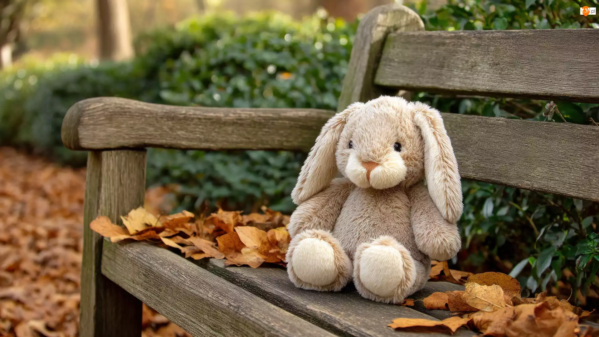 Ławka, Zabawka, Królik, Liście