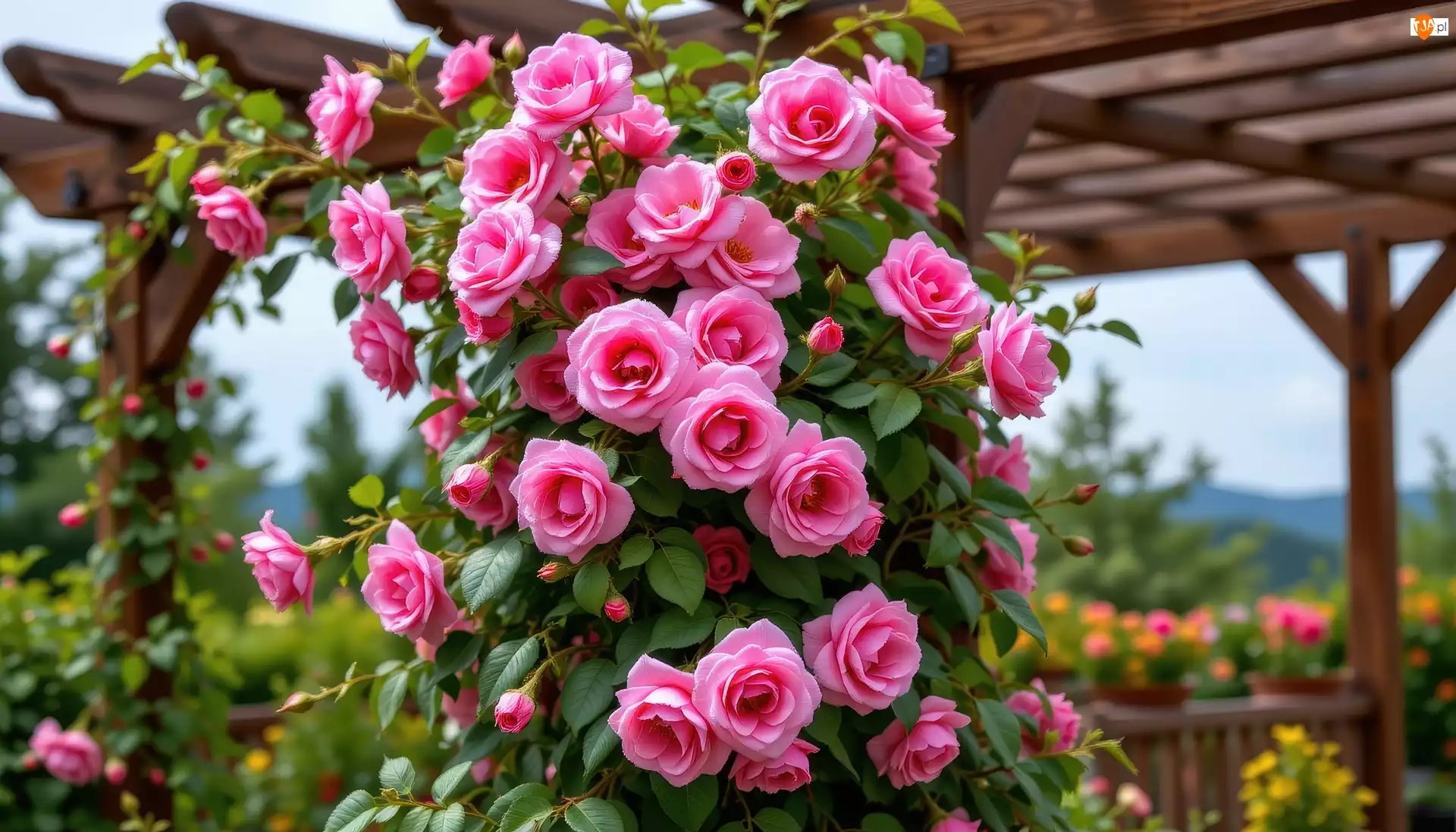 Pnące, Róże, Pergola, AI, Kwiaty, Grafika