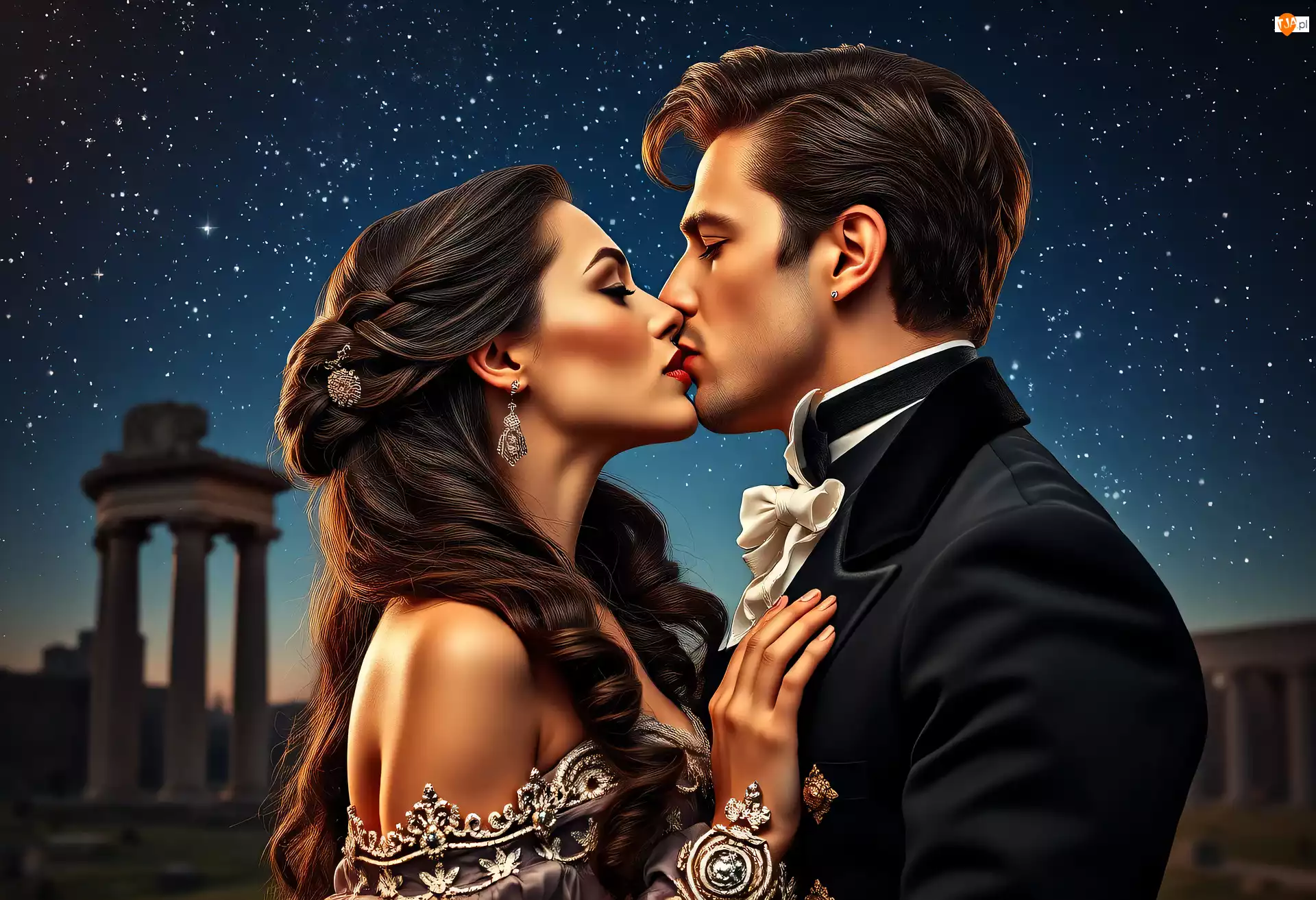 Pocałunek zakochanych pod rozgwieżdżonymniebem