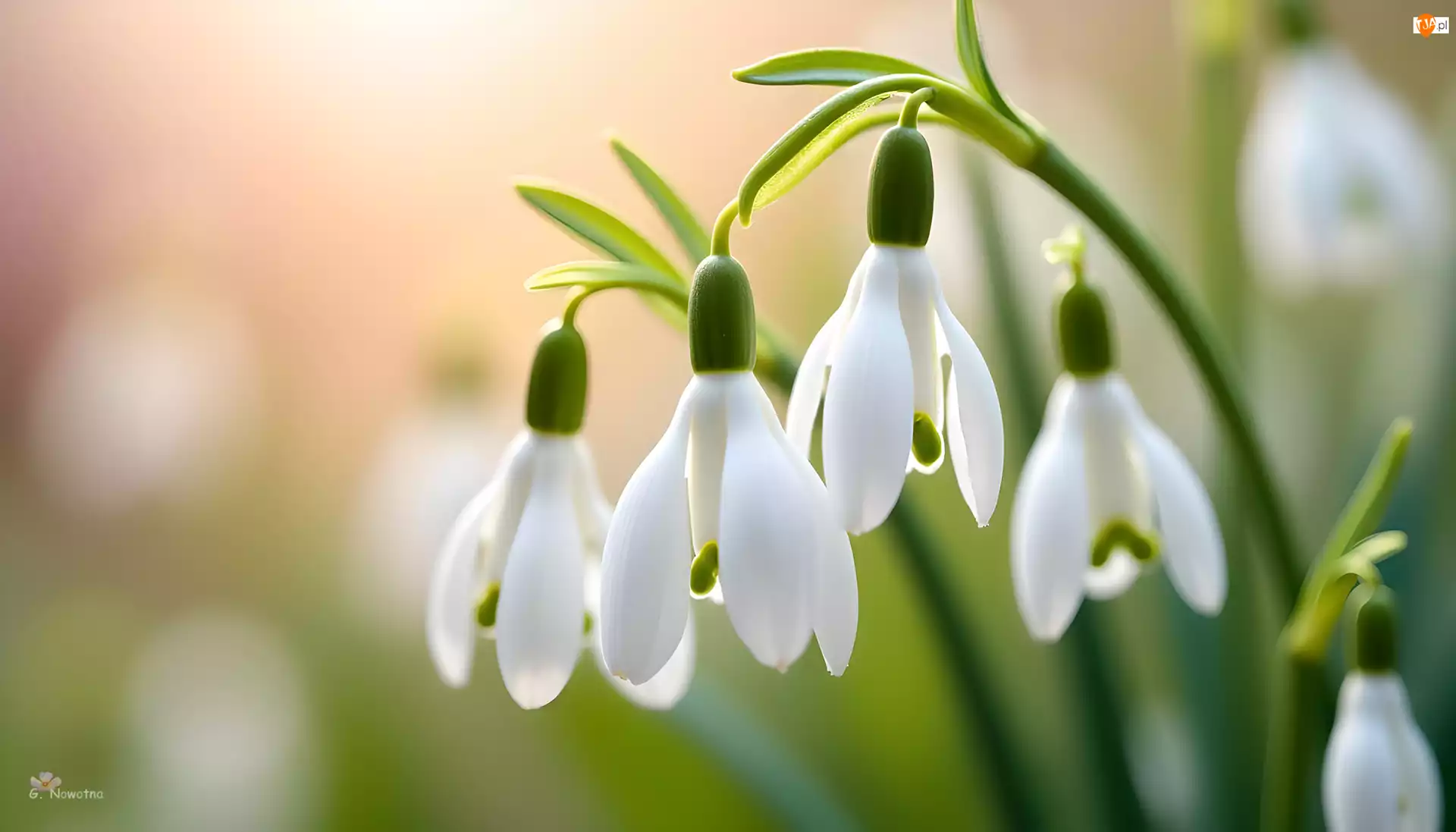 Pochylone, Grafika, Białe, Przebiśniegi, Kwiaty