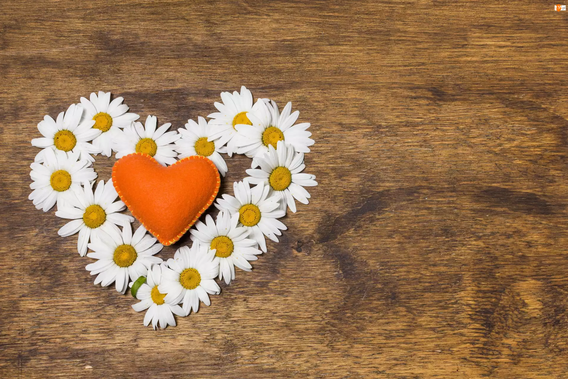 Margerytki, Kwiaty, Serce, Deska, Pomarańczowe, Poduszeczka