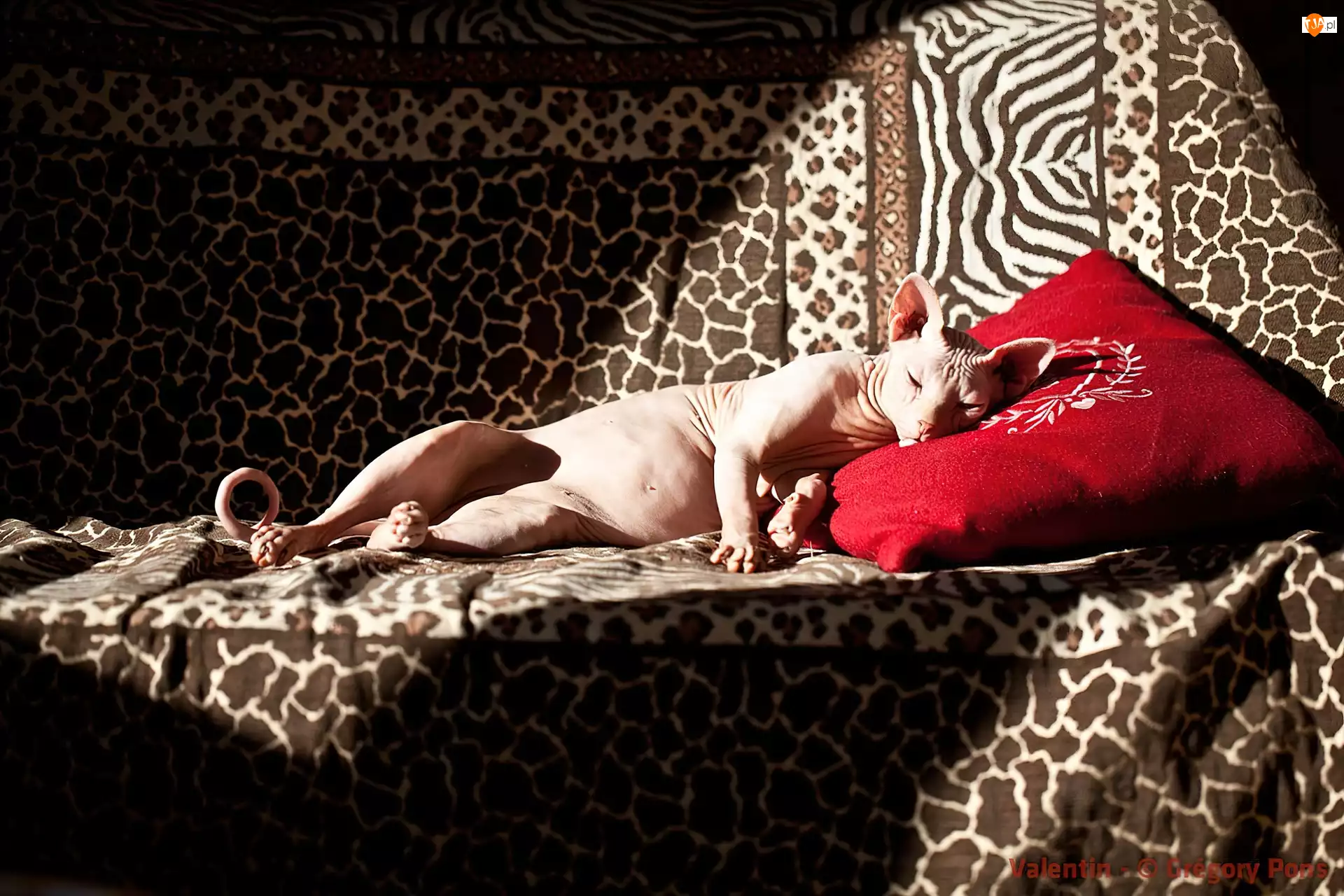 Poduszka, Kotek, Kanapa, Sfinks, Czrwona