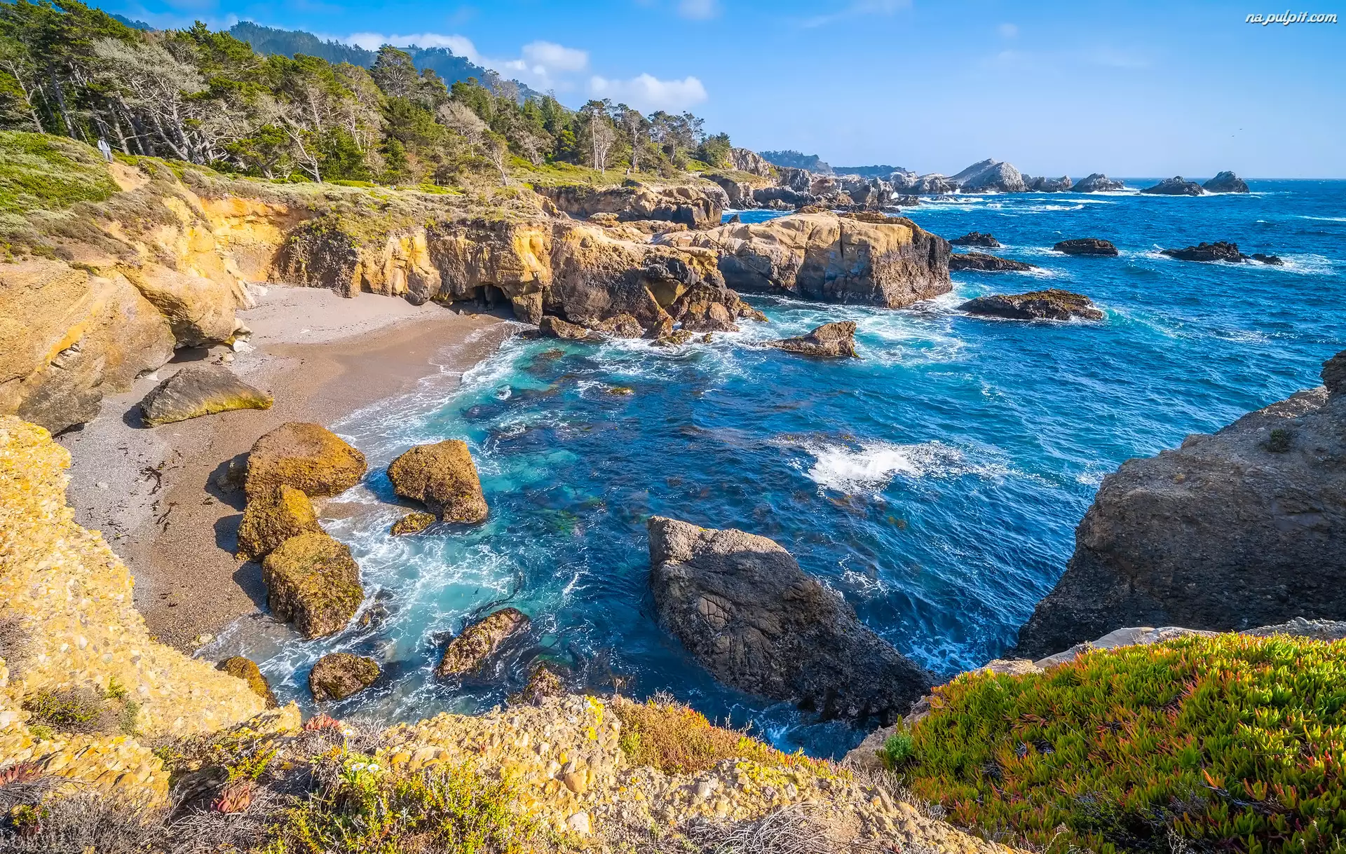 Point Lobos, Skały, Plaża, Kalifornia, Morze, Re