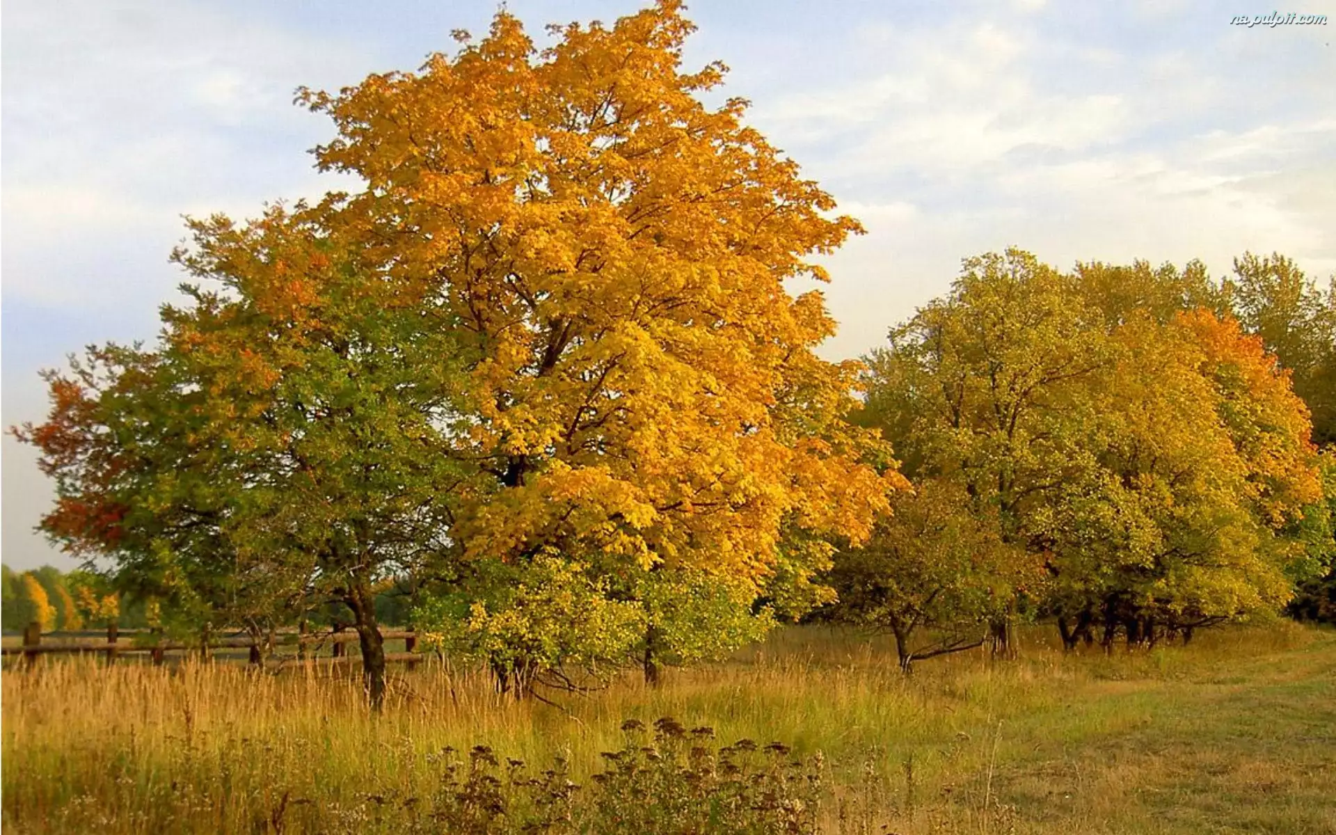 Jesień, Pola, Łąka, Drzewa