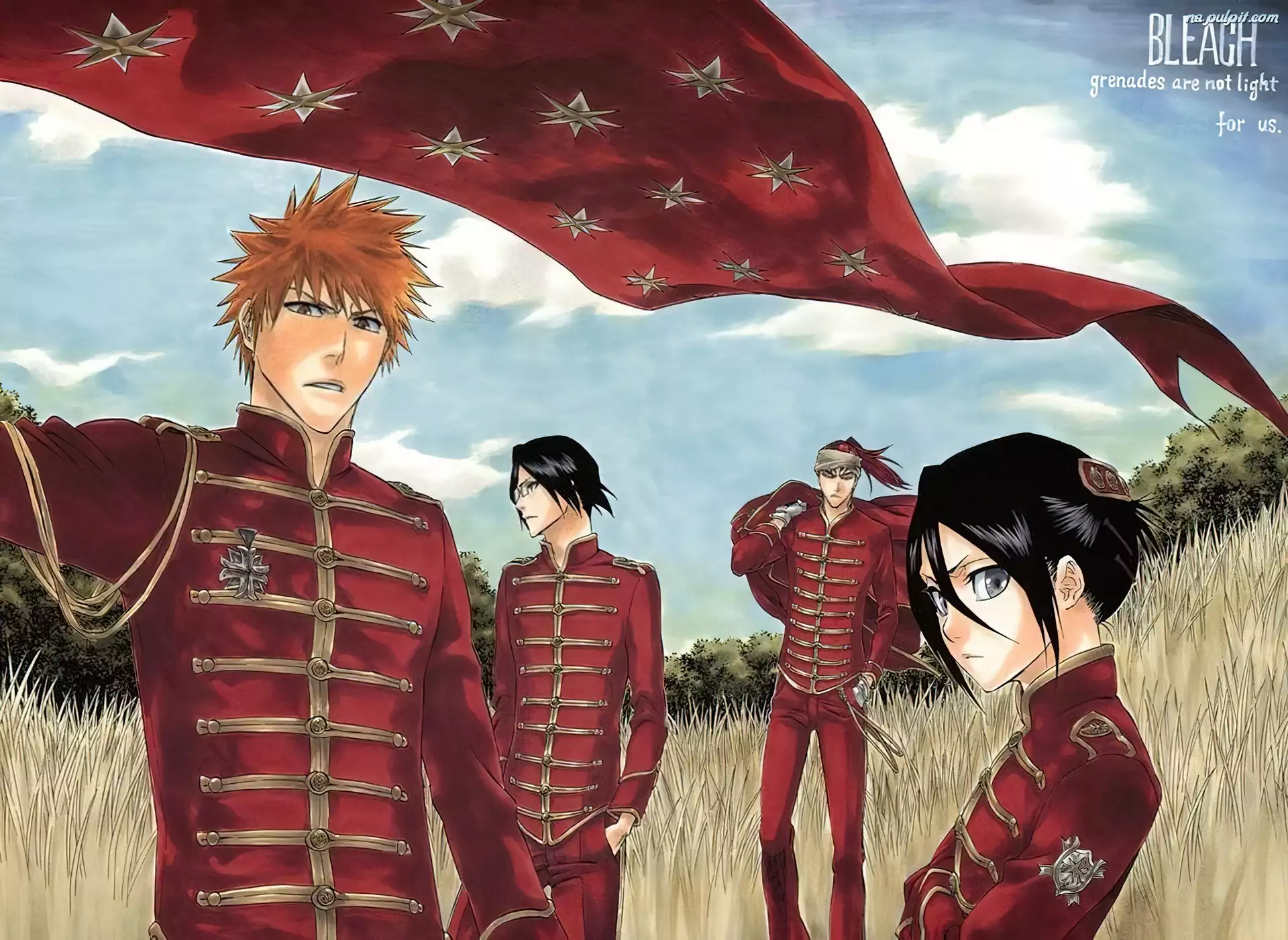 pole, Bleach, czerwona, postacie, flaga