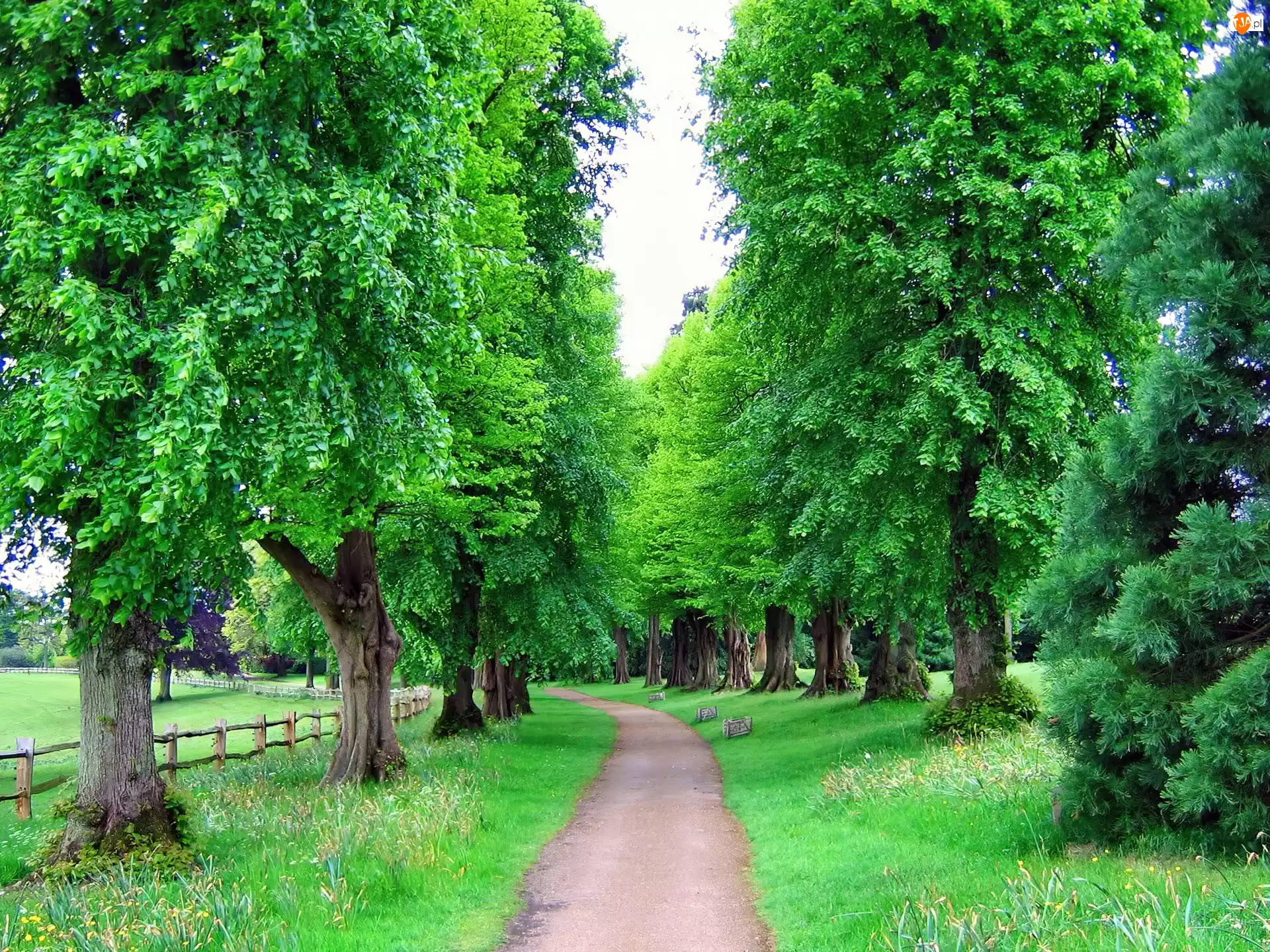 Pole, Droga, Drzewa, Zielone, Ogrodzenie