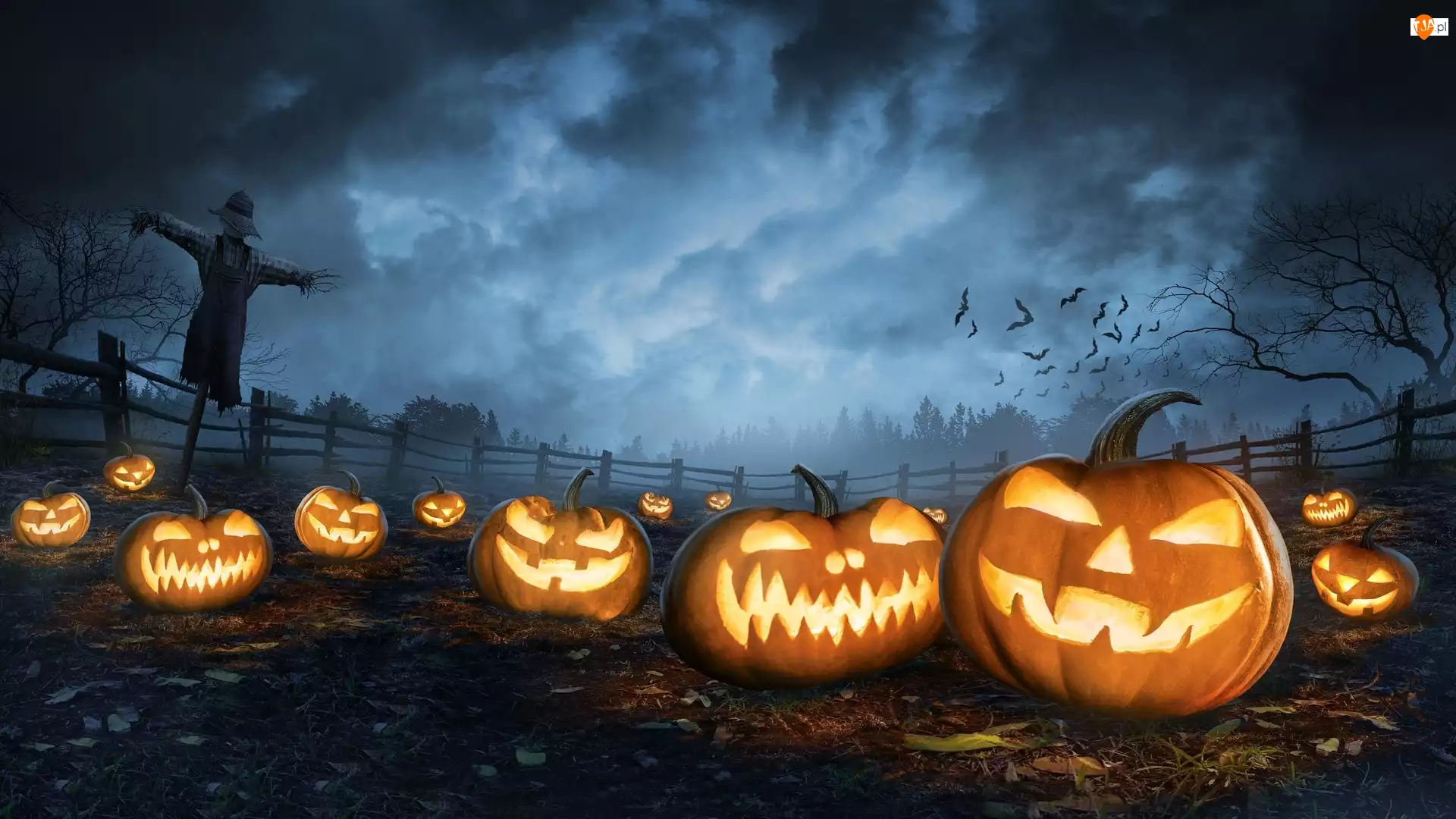 Pole, Grafika, Dynie, Latarnie, Halloween