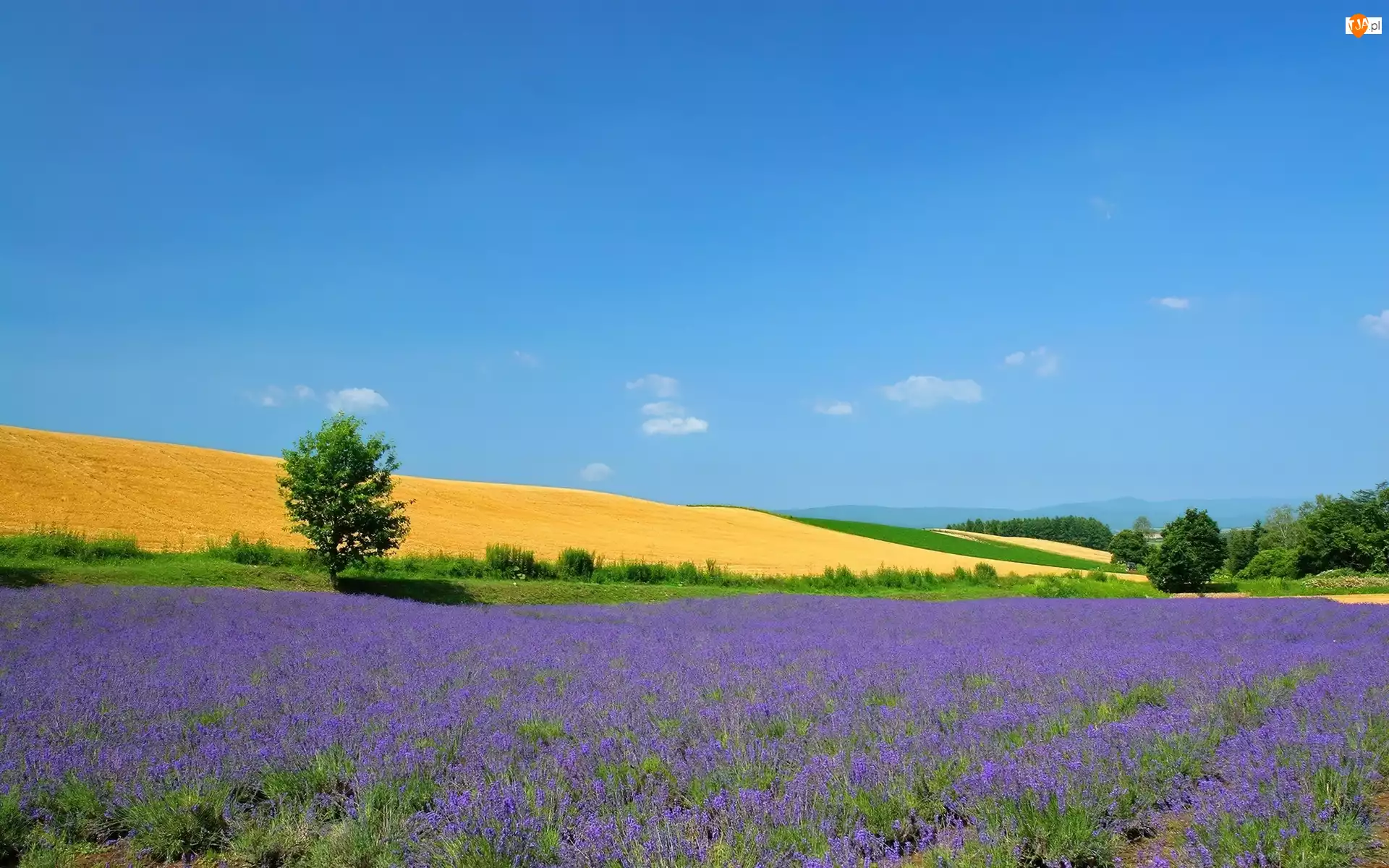 Pole, Lawenda wąskolistna, Drzewo, Niebo