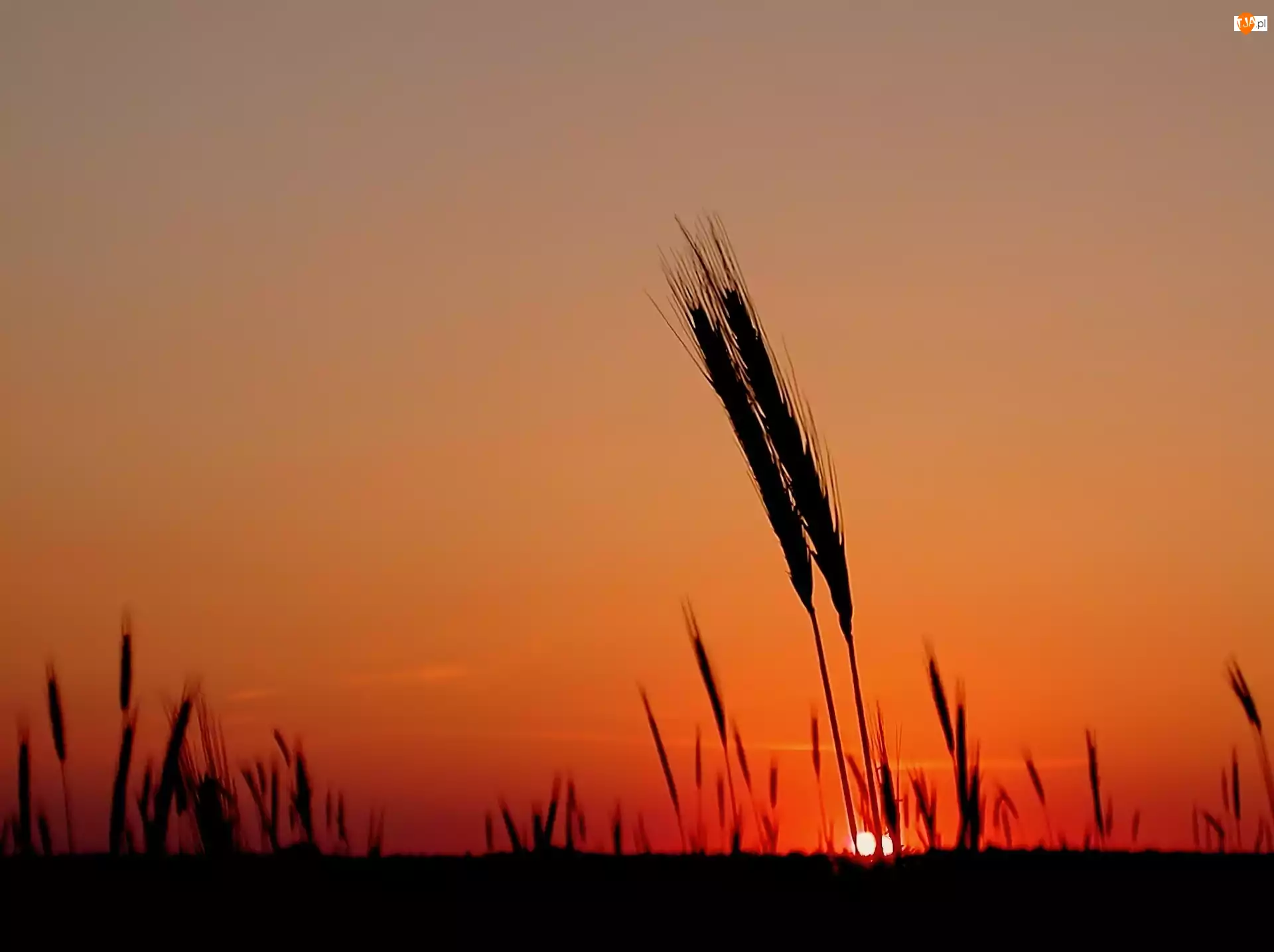Pole, Zachód, Kłosy, Słońca, Para, Łany