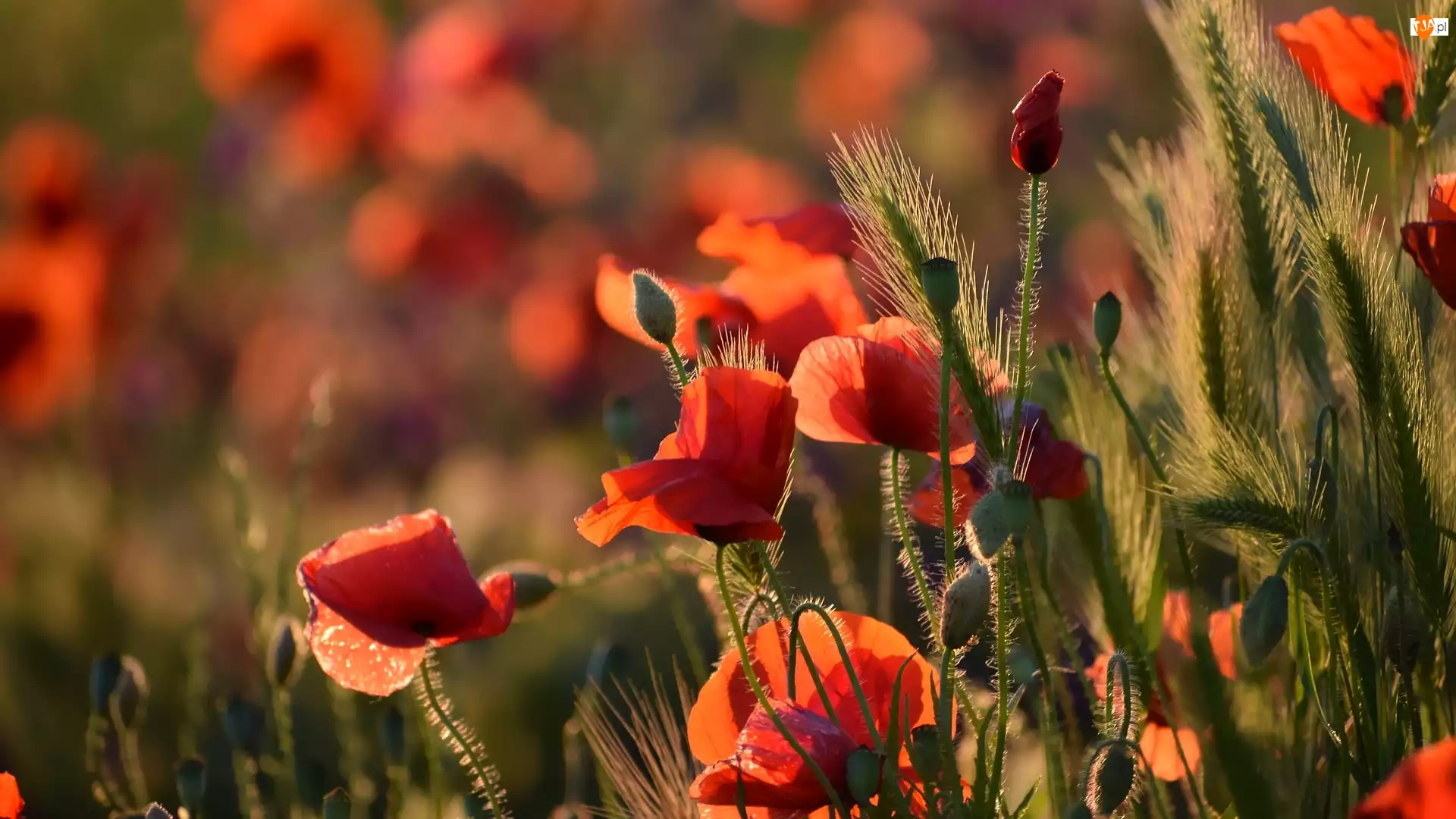 Kwiaty, Łąka, Czerwone, Kłosy, Polne, Maki