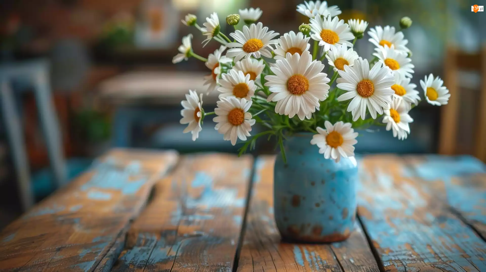 Wazon, Deski, Białe, Kwiaty, Bukiet