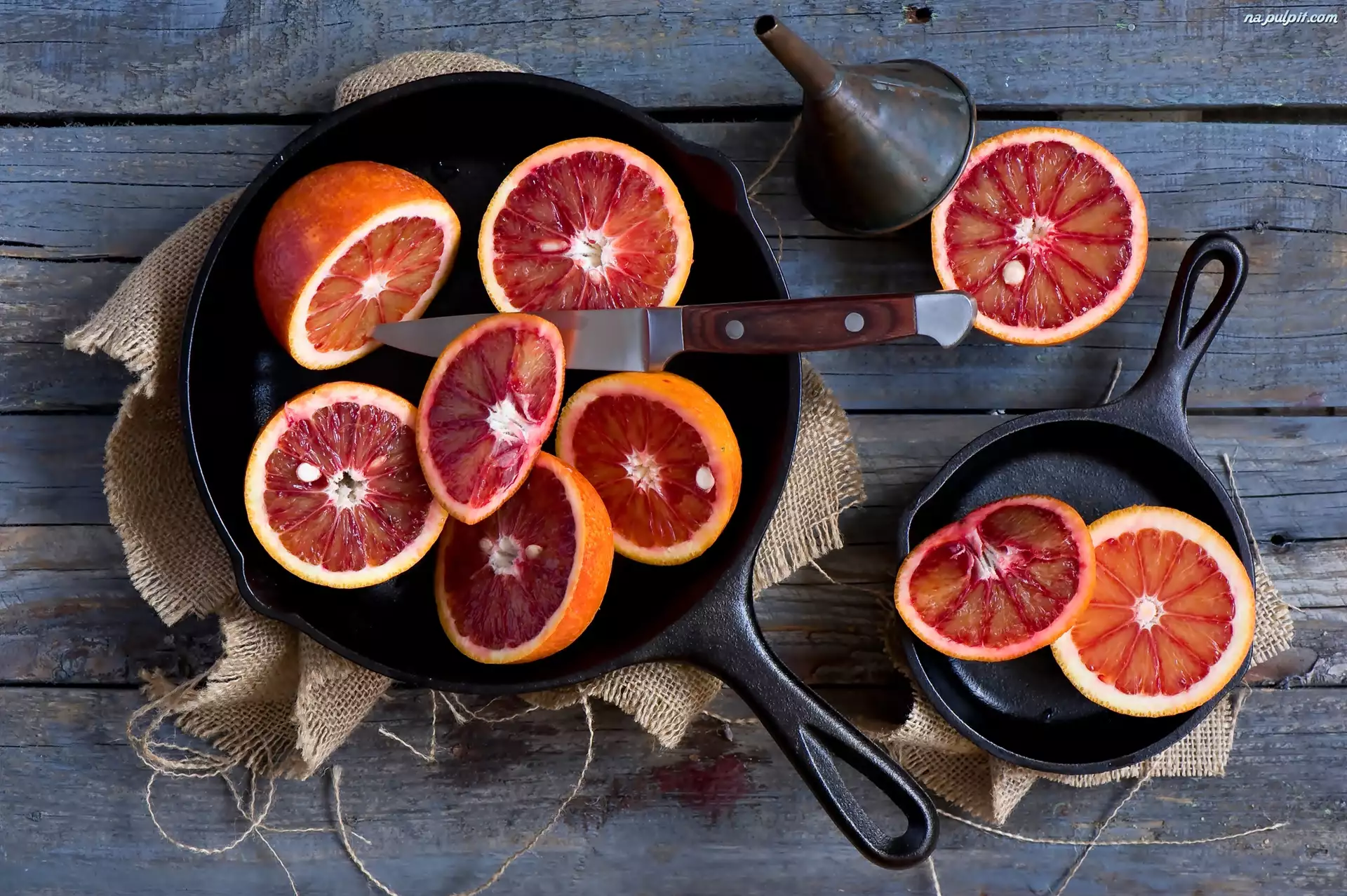 Połówki, Nóż, Pomarańcze, Kompozycja, Naczynia