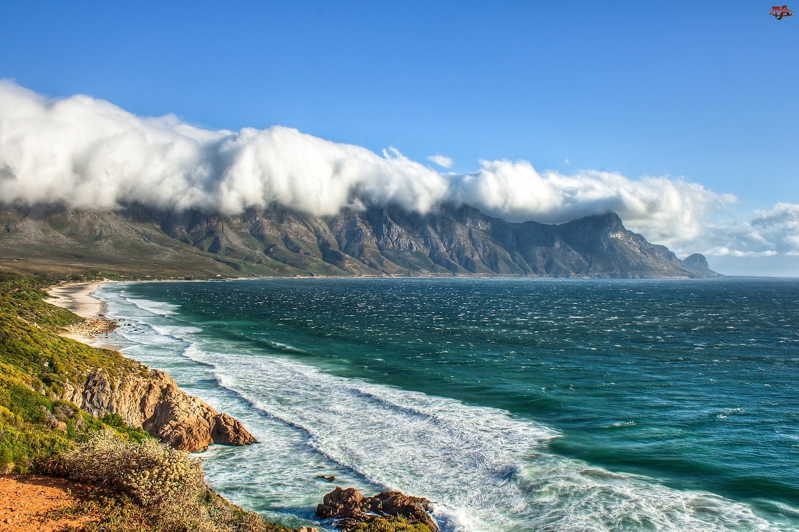 Chmury, Południowa Afryka, Góry, Morze, Kogel Bay