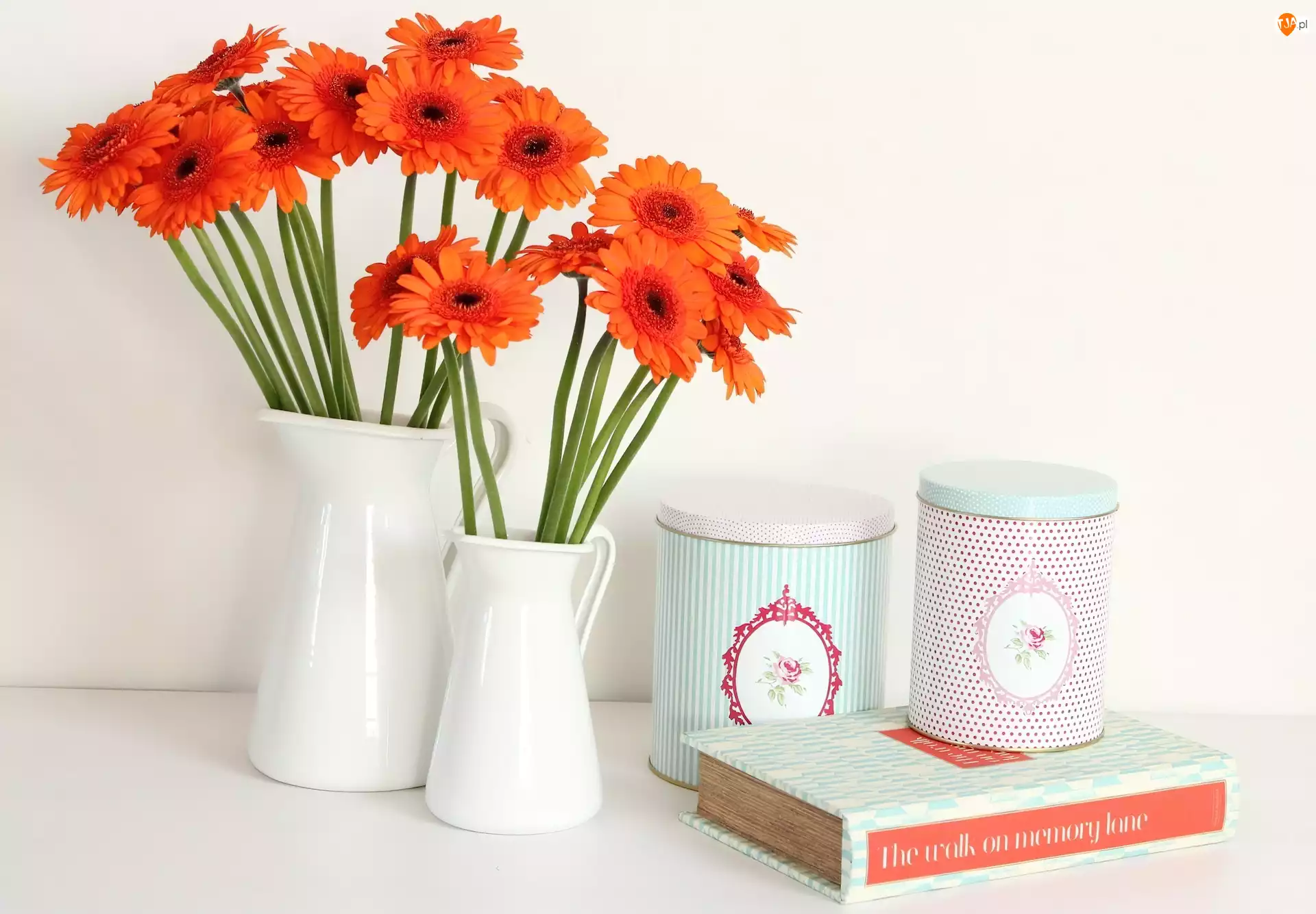 Pomarańczowe, Pudełka, Białe, Książka, Flakony, Gerbery