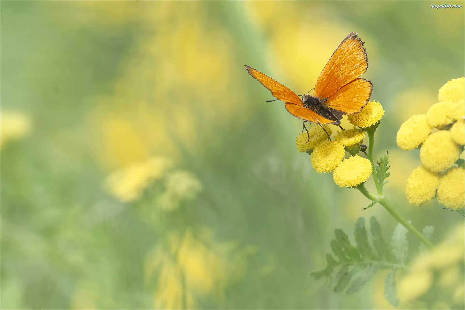 Pomarańczowy, Czerwończyk dukacik, Wrotycz, Kwiat, Motyl