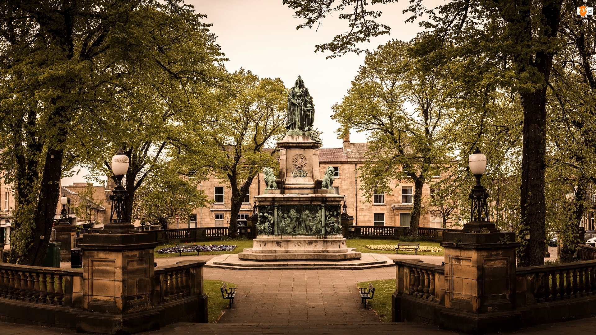 Królowej Wiktorii, Pomnik, Drzewa, Anglia, Park, Lancaster