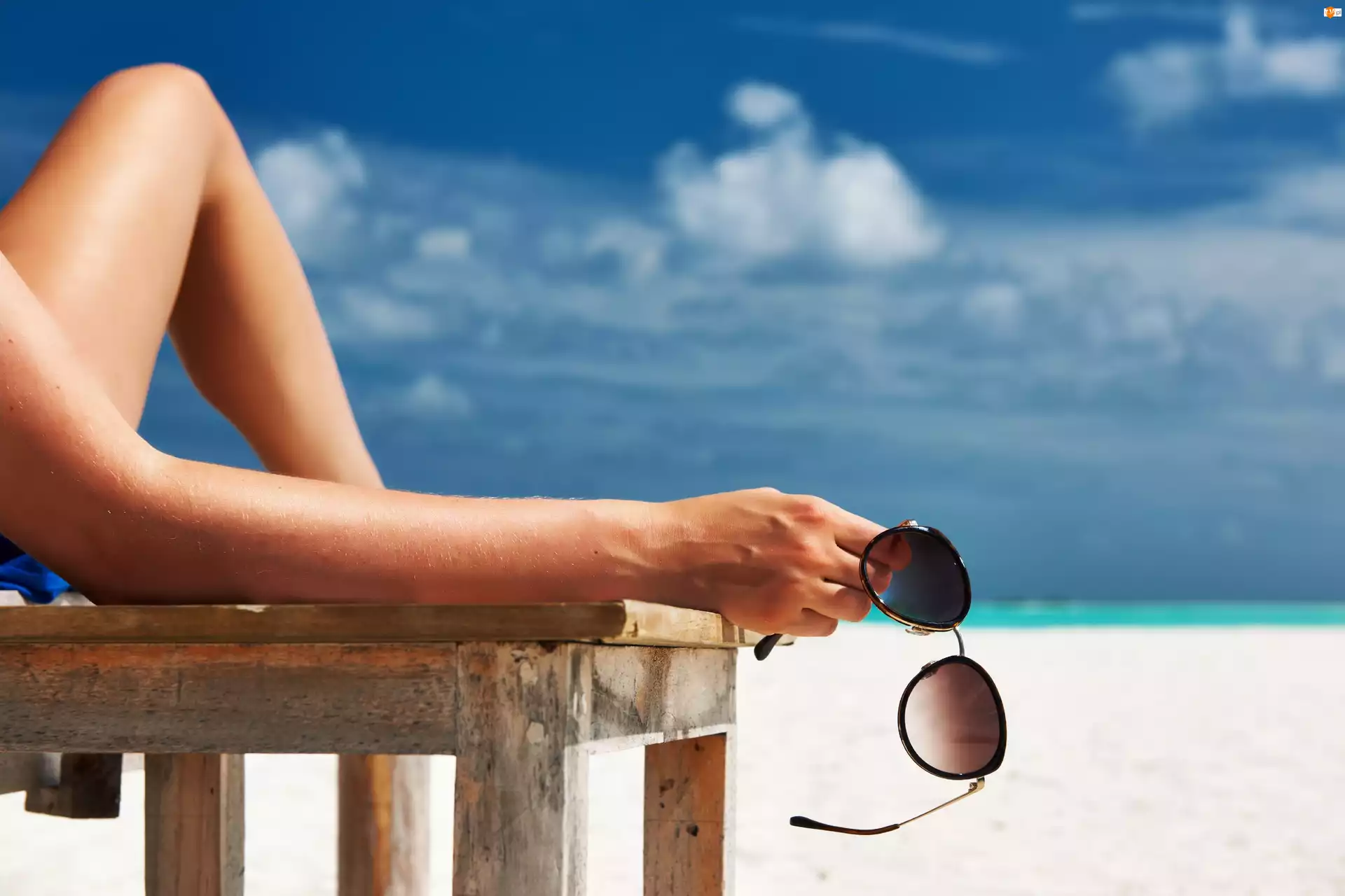 Opalanie, Pomost, Relax, Kobieta, Morze