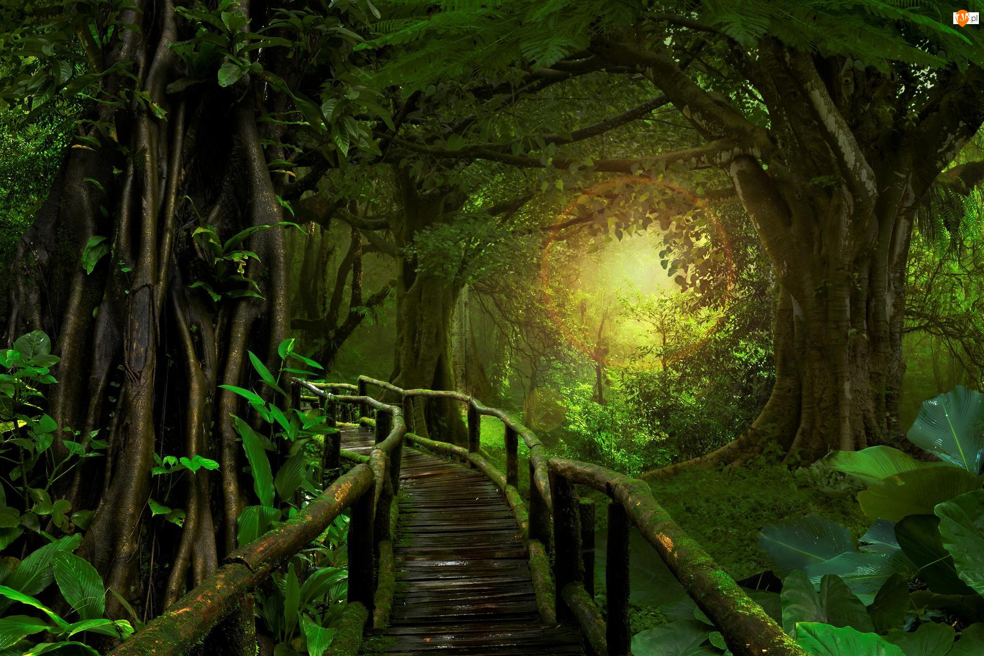 Pomost, Las, Światło, Drzewa, Zieleń, Słoneczne