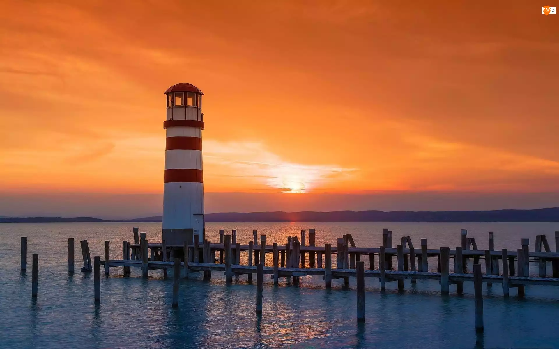 Pomost, Zachód, Latarnia, Słońca, Morska, Morze