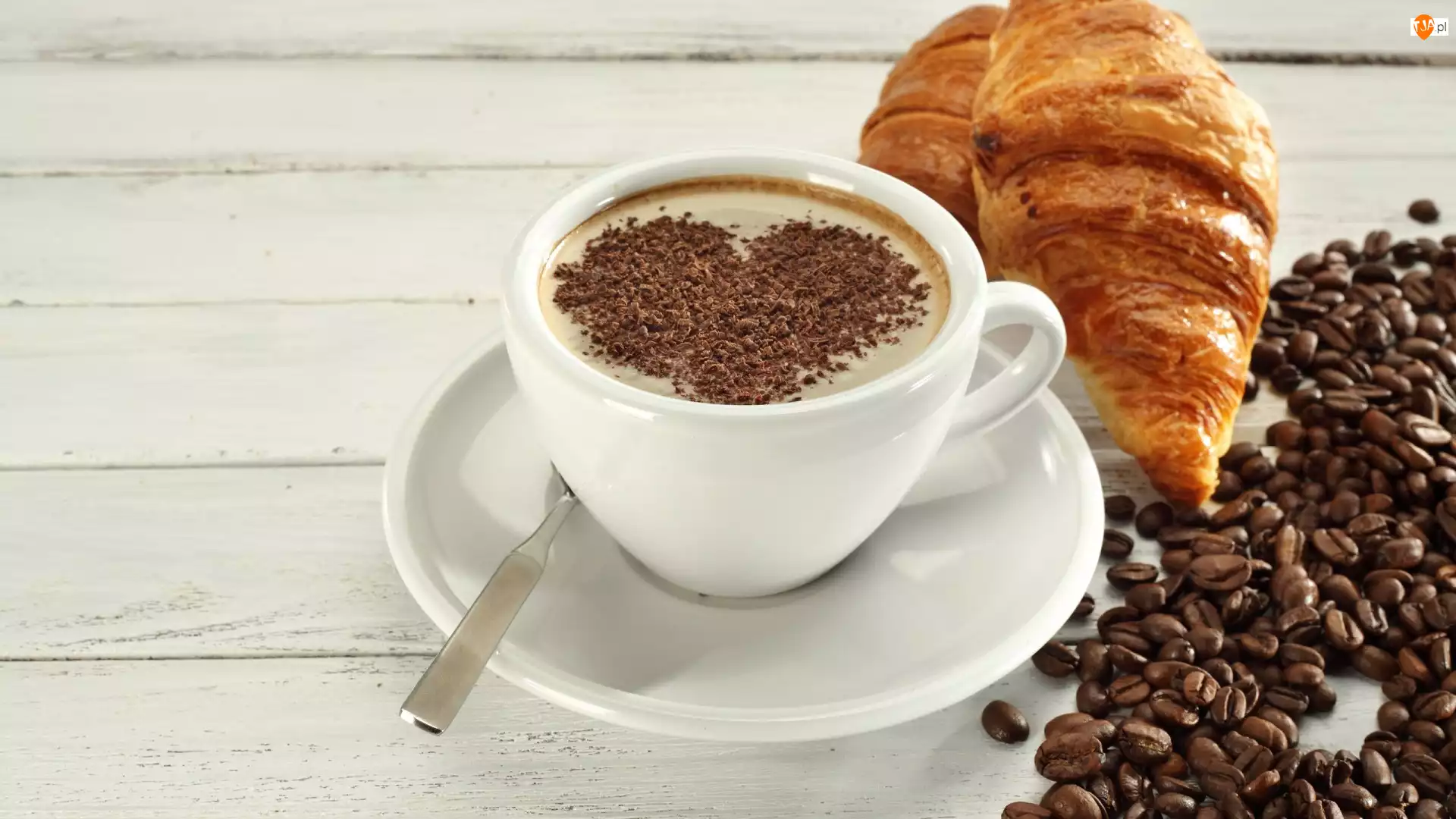 Kawa, Filiżanka, Ziarna, Croissanty, Serce, Rogaliki