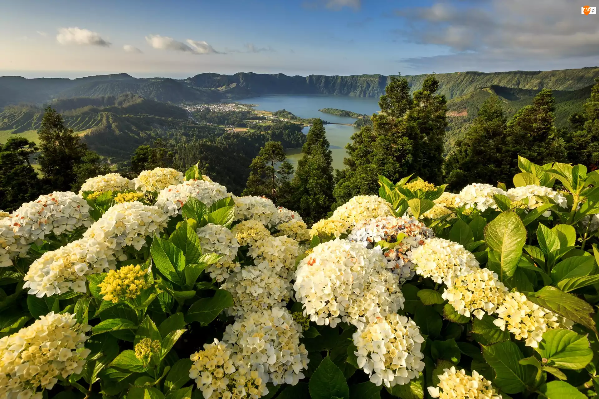 Portugalia, Hortensje, Jezioro, Góry, Azory