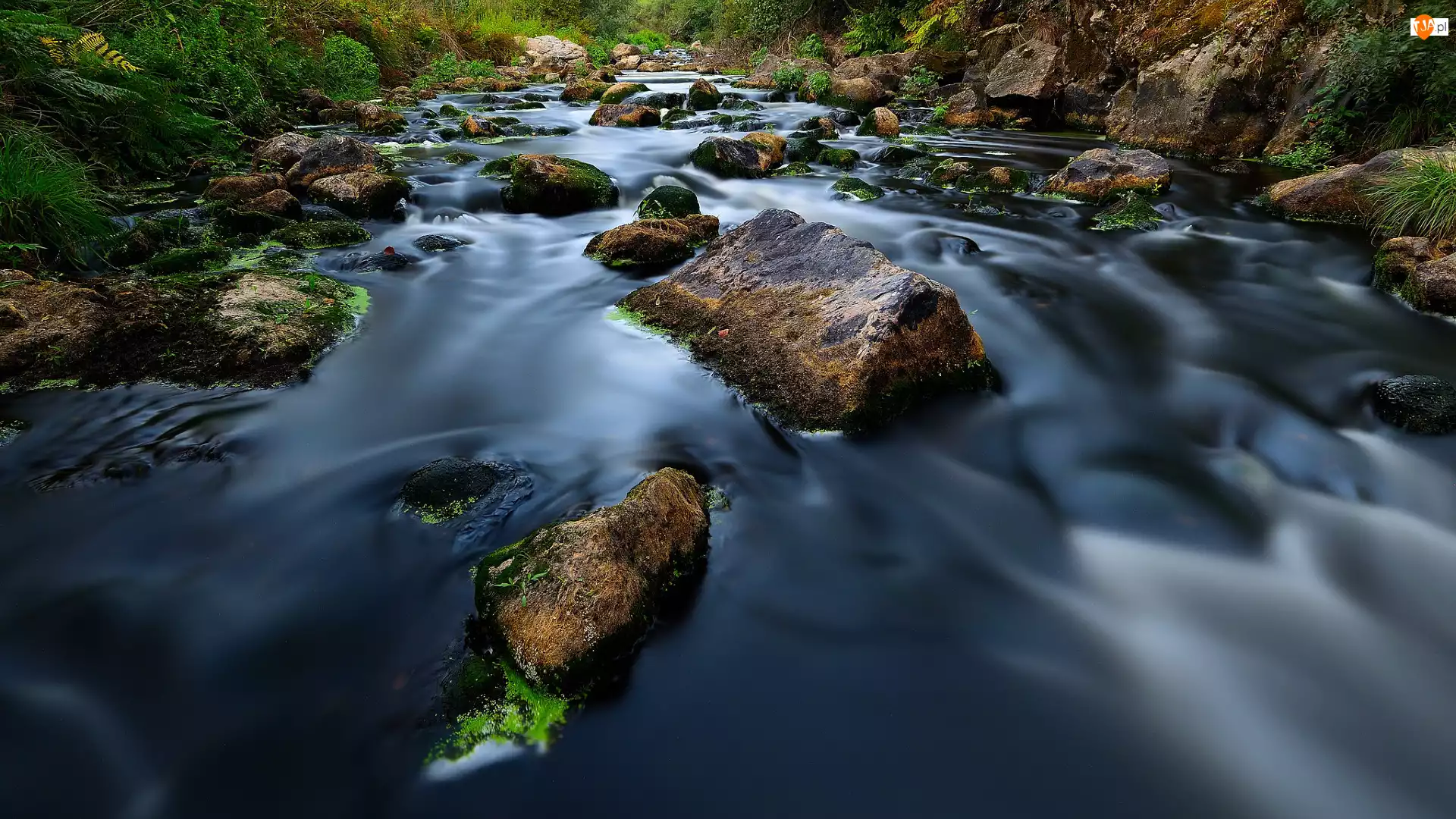 Portugalia, Kamienie, Valongo, Aldeia de Couce, Miejscowość, Rzeka, Rio Ferreira, Roślinność, Wioska