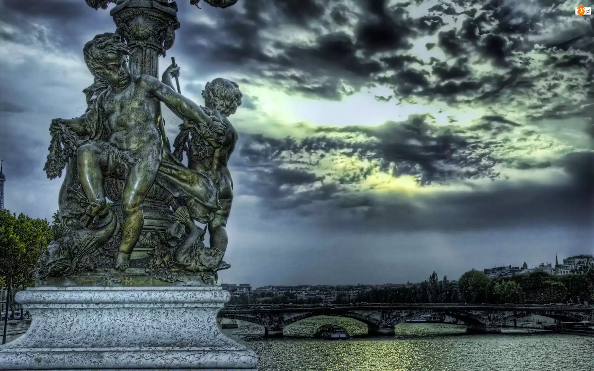 Posąg, Niebo, Rzeka, Most