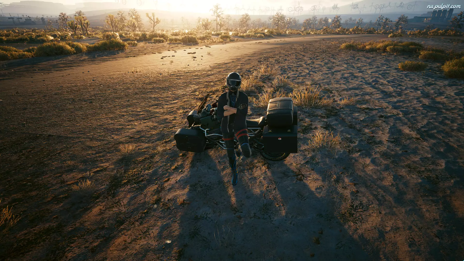 Motocykl, Cyberpunk 2077, Postać, Pole, Gra