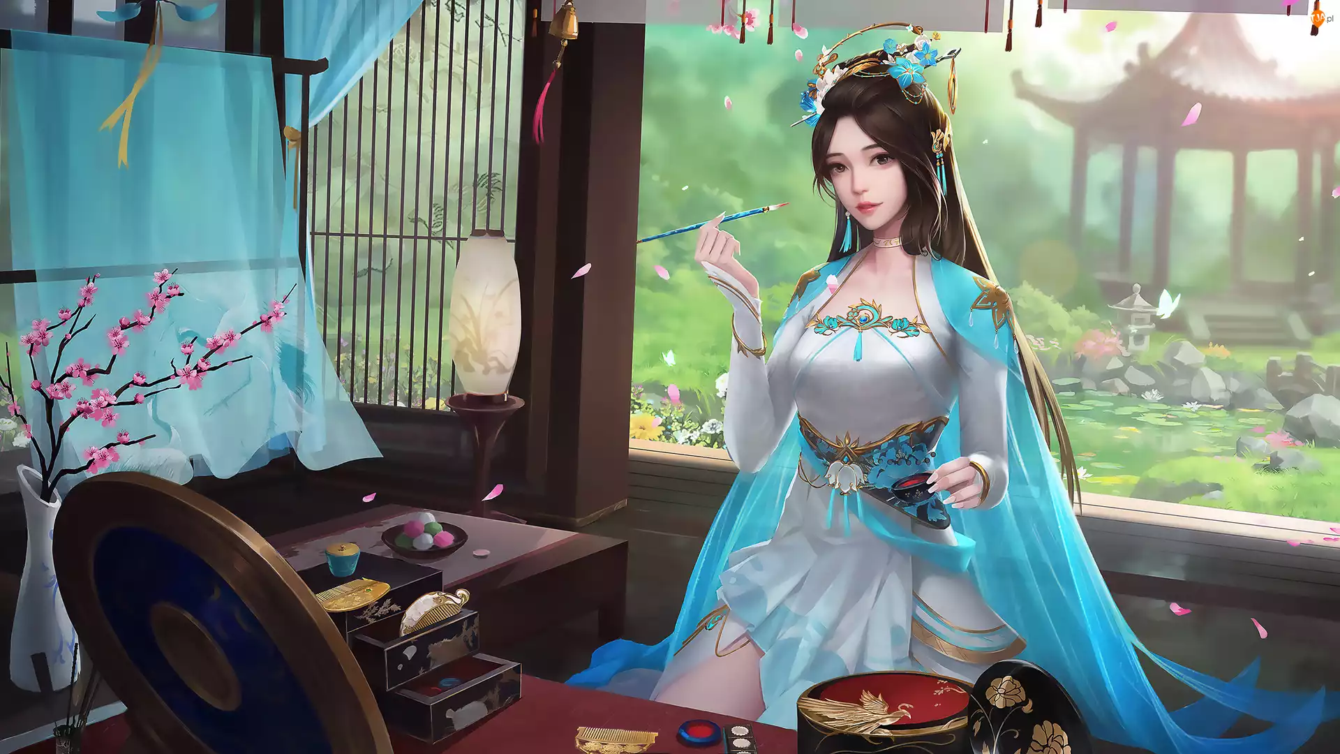 Three Kingdoms Legends of War, Postać, Farby, Gra, Pędzel, Lustro, Kobieta