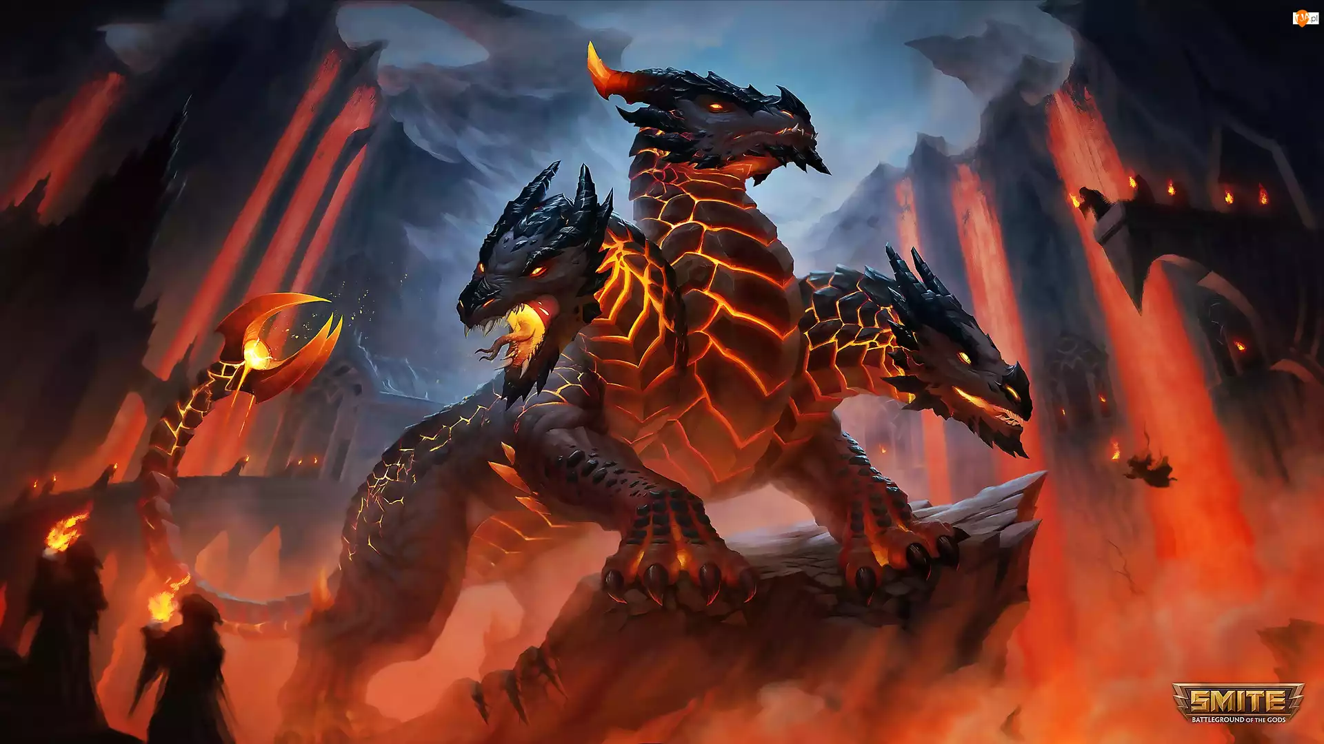 Smite Battleground of the God, Postać, Pochodnie, Gra, Noc, Smok, Cerberus