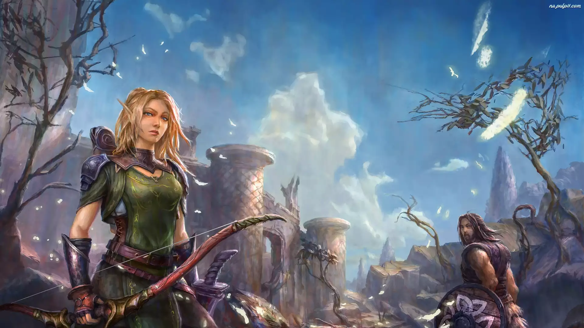 Wojownik, Eternity The Last Unicorn, Skały, Łuk, Miecz, Postać, Kobieta, Gra, Elfka Aurehen