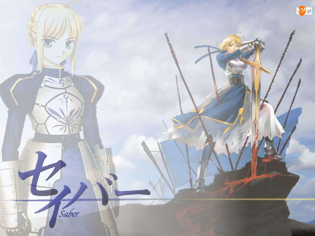 postać, Fate Stay Night, miecz, Saber, kobieta