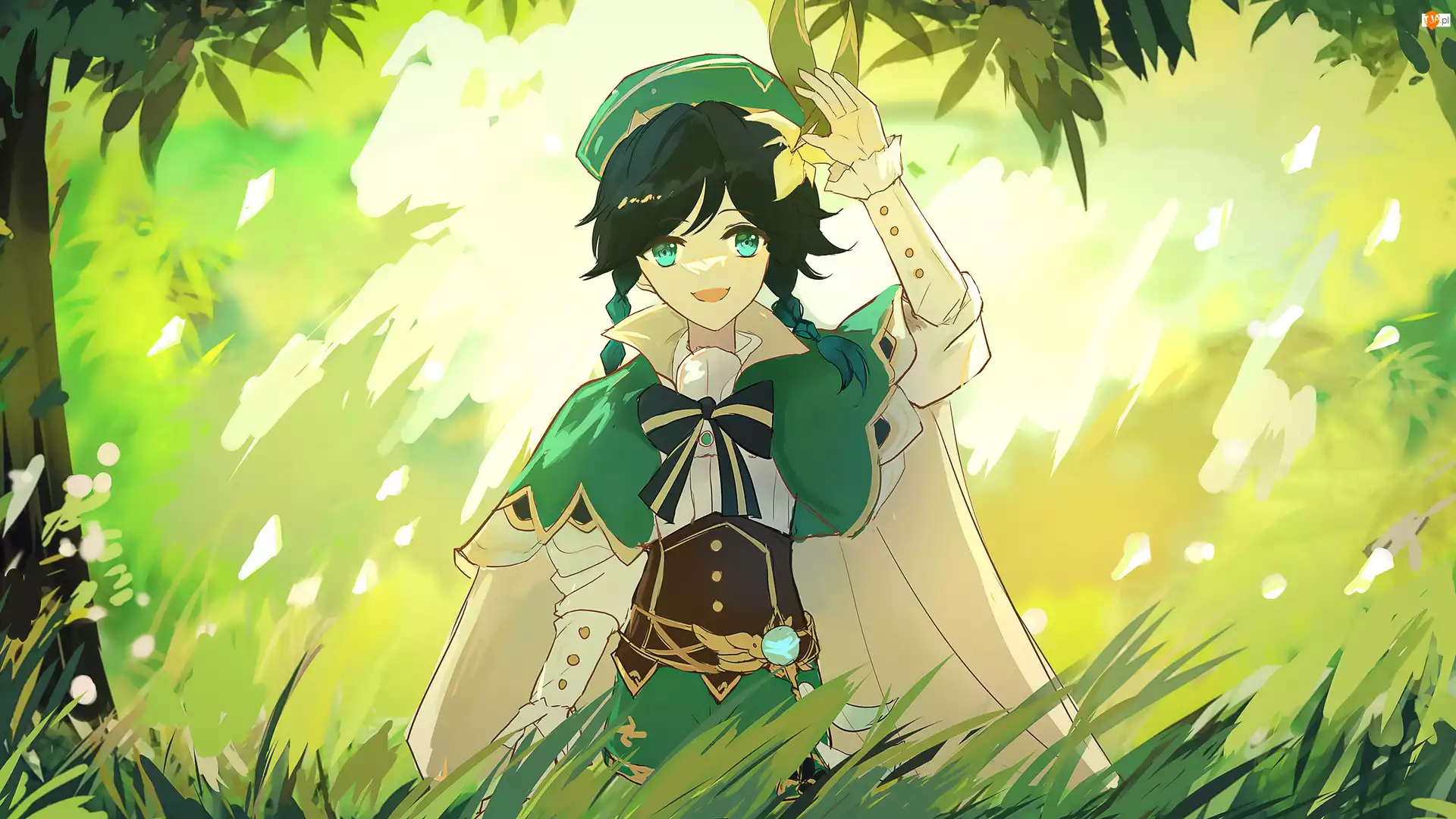 Postać, Venti, Rośliny, Genshin Impact, Kokarda,