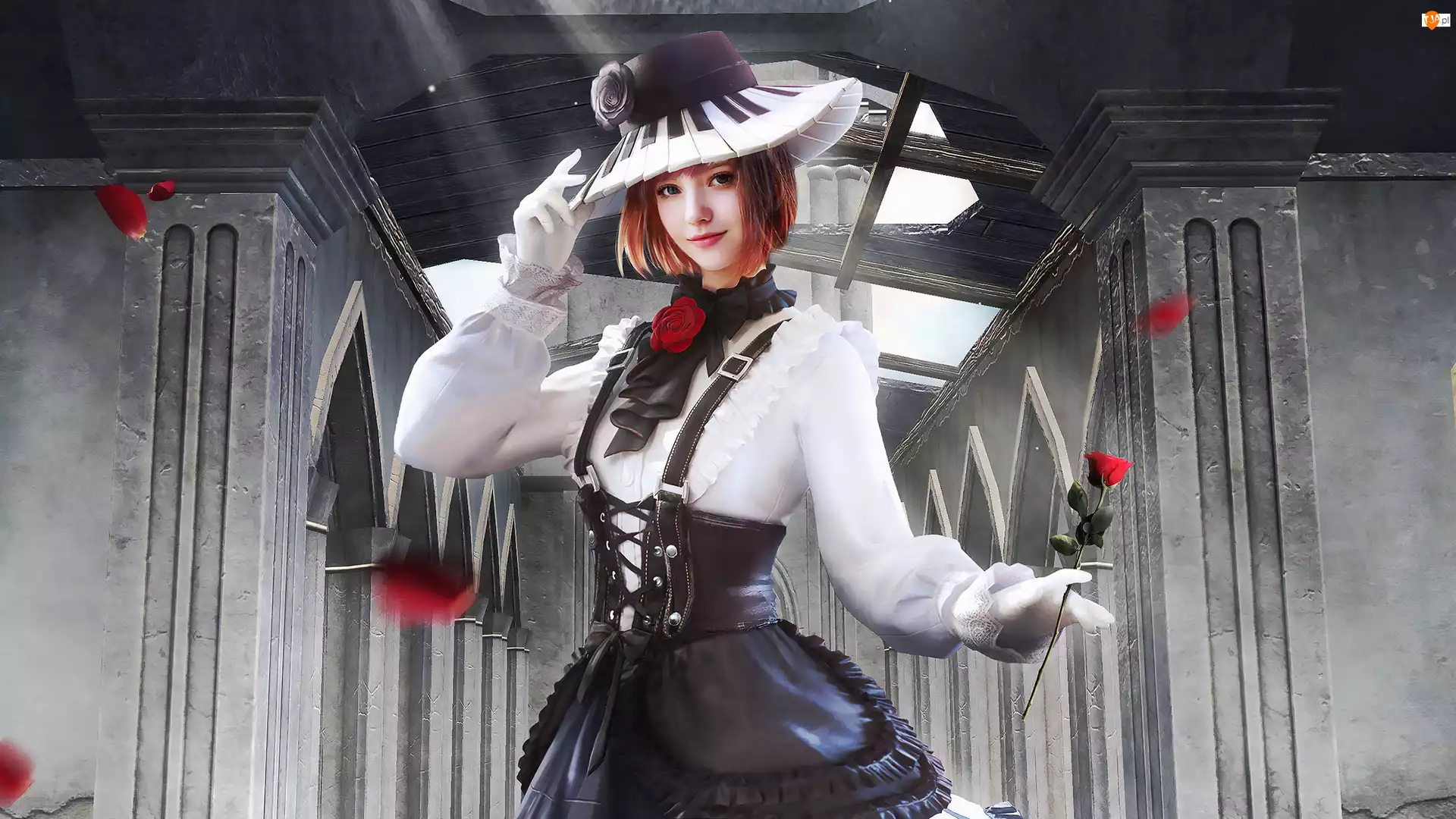 PUBG Rosy Melody Set, Kobieta, Kapelusz, Gra, Płatki, Róża, Kwiat