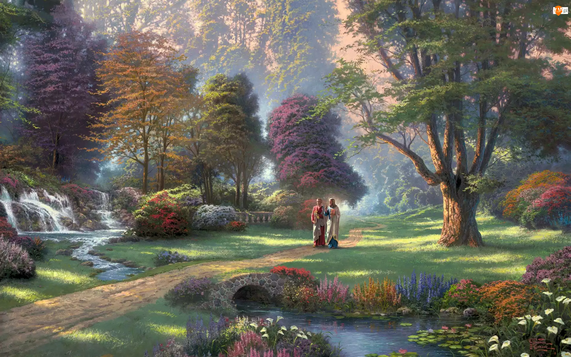 Postacie, Park, Zieleń, Rzeczka, Święte