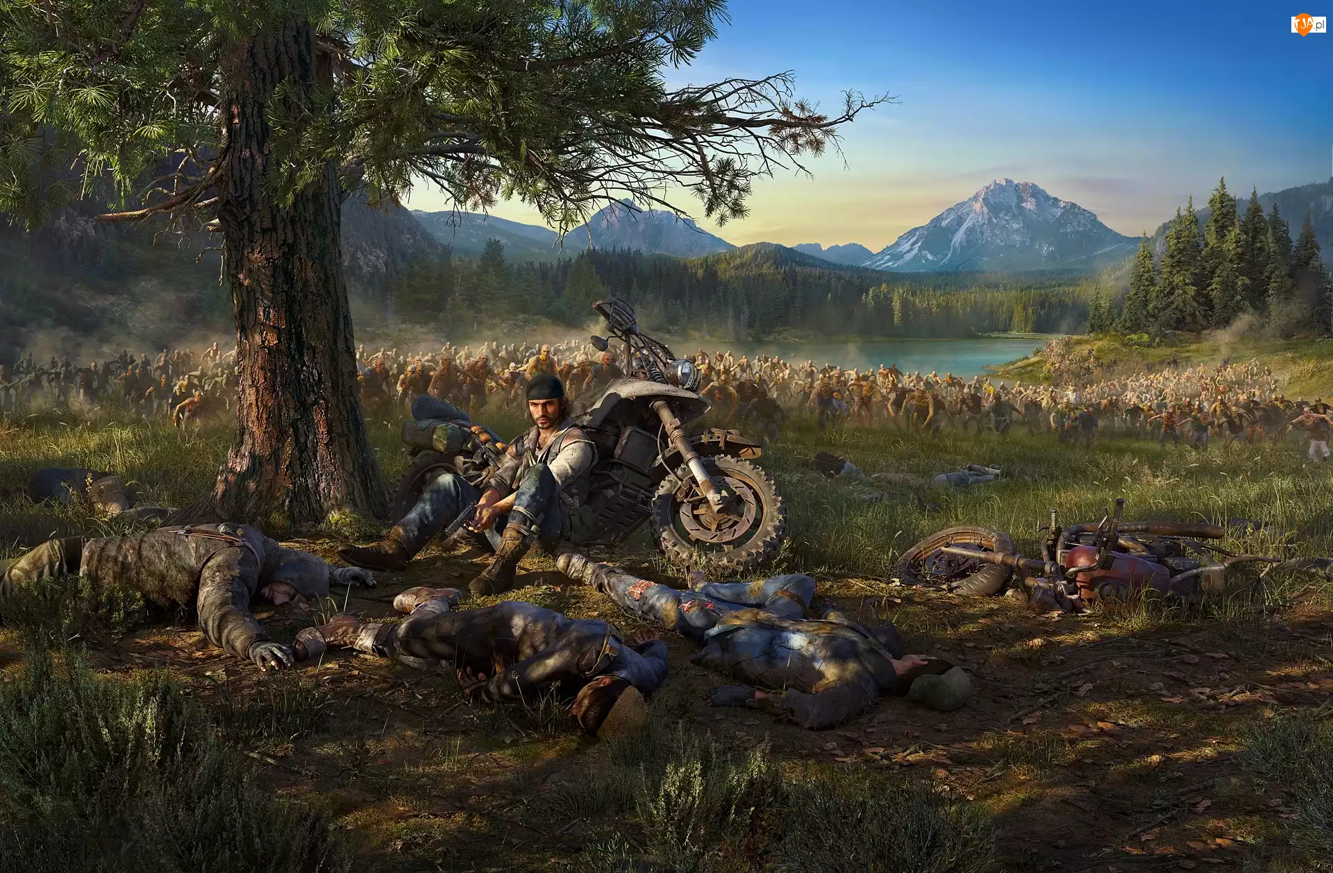 Motocykl, Gra, Łowca nagród, Drzewo, Days Gone, Deacon St. John, Góry, Postacie